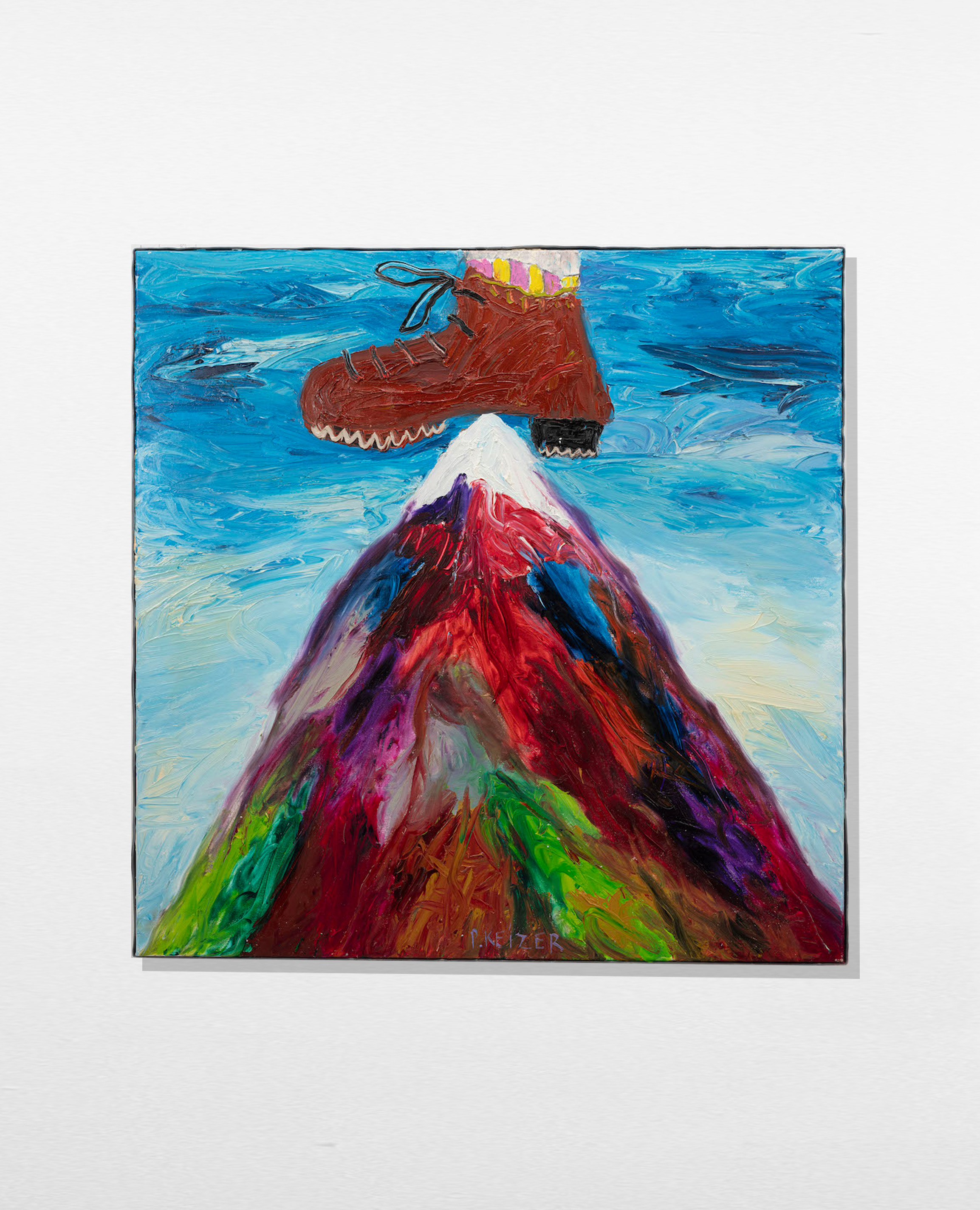 Both magnificient and absurd, Peter Keizer's work is about a world where only positive feelings arise: full of flowers, trees, mountainous landscapes and dogs. His themes are closely connected to childhood memories; as if time had turned his memories into idealized, colorful works of art. The thick oil paint is mostly used directly out of the tube, and gives a sculptural aspect to the paintings: thus enhancing the presence of the colours. "Lie on the grass and look up to the trees, if you have a young mind, you'll see what I painted" - Peter Keizer says.