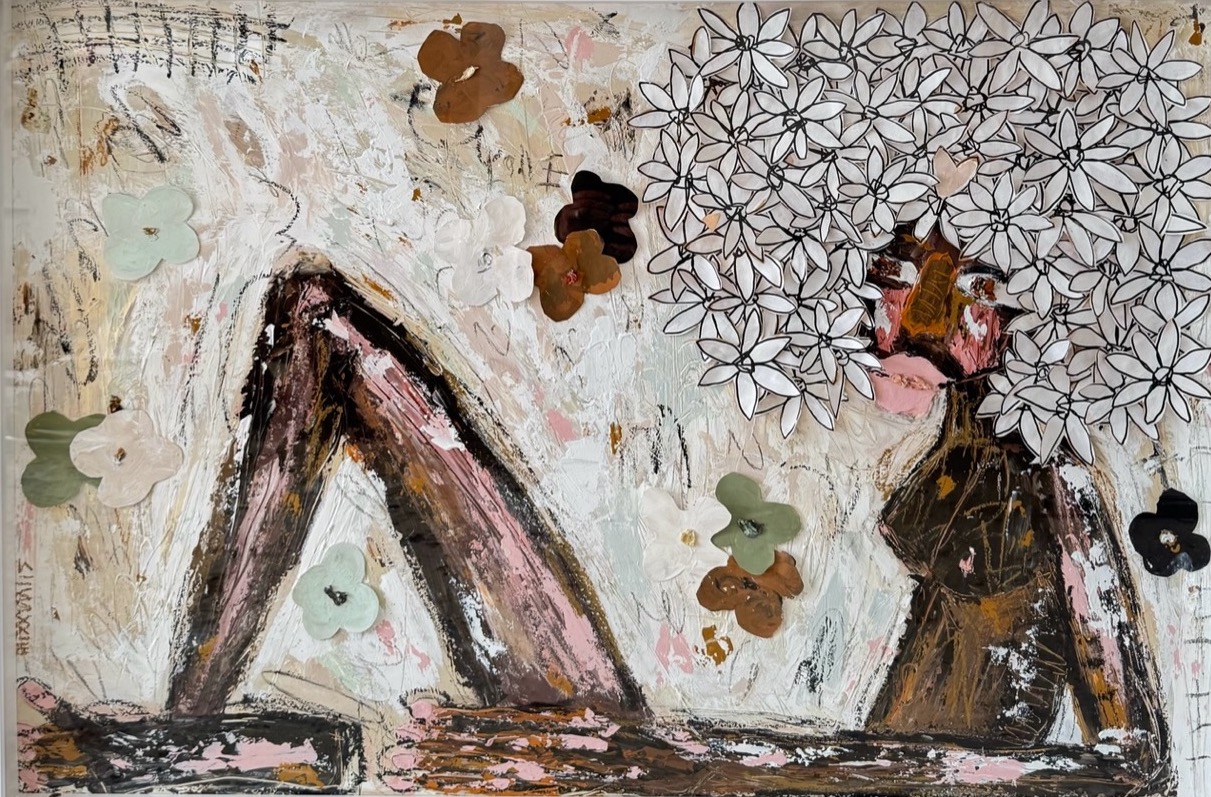 Inspired by Basquiat, Raushenberg or Combas, the work of Silvia Calmejane is however deeply personal. In each of her compositions, the artist scatters with the brush traces of her history, travels and inspirations. The words in her paintings, mysterious incantations, recall in that sense the hippie slogans of the 1970s, an important period for the artist.