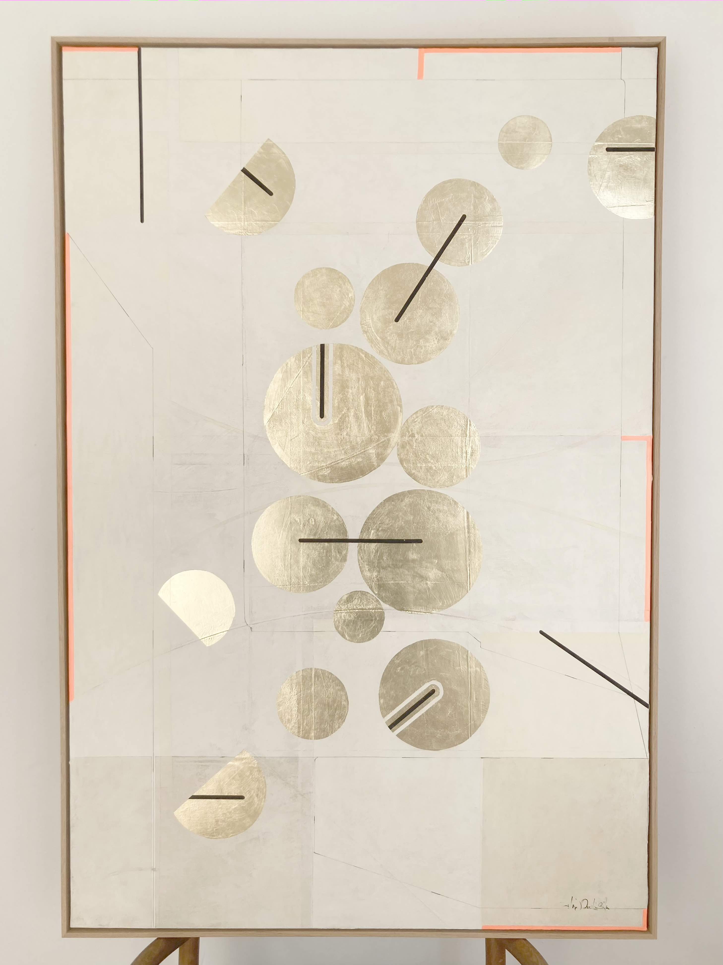 Urban and contemporary, Elise Oudin Gilles's art is in harmony with the times. As an artist, she is not afraid to merge languages and inspirations by creating a link between textile design and street art. Mixing materials and colours, Oudin Gilles plays with transparencies and sometimes uses calligraphy. By multiplying layers, she confronts and harmonizes a wide range of diverse and varied mediums.