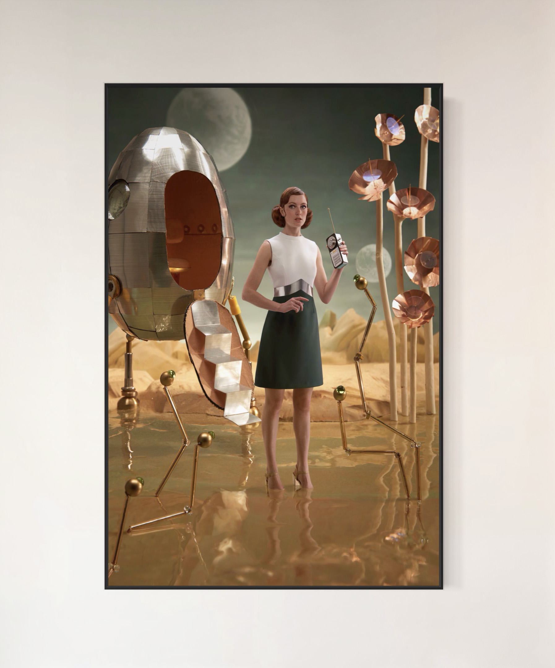 “Les Demoiselles,” it's a photographic series that portraits young women in hand-built miniature worlds. Inspired by the aesthetics of the 1960s and 70s, and her childhood imagery, these vividly colored compositions bringing both nostalgia and a playful sense of displacement. Each scene deliberately blurs perception: the miniature appears real, while the characters frozen in enigmatic situations inhabit a world where illusion becomes believable. Through this visual language, a parallel, poetic, and orderly universe emerges, offering refuge from the complexity of reality.