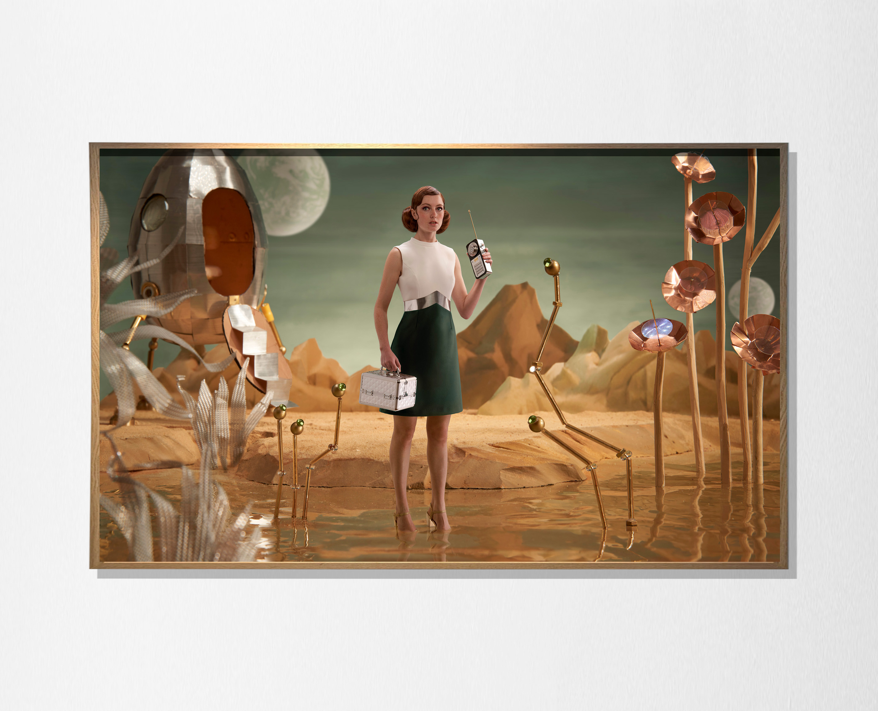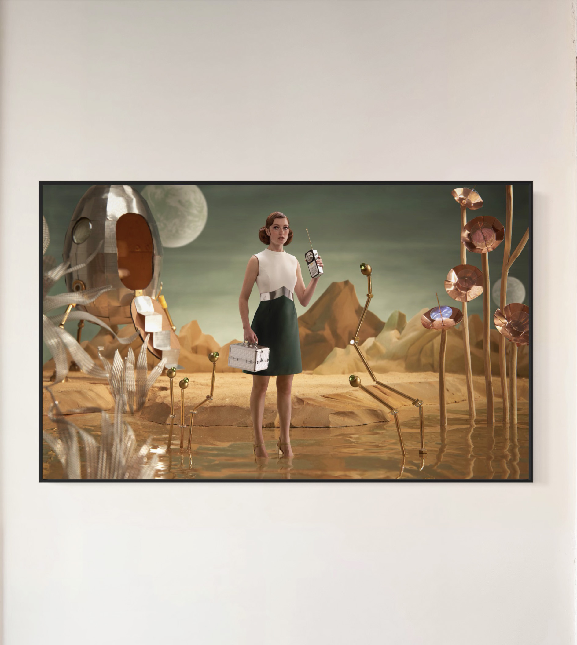 “Les Demoiselles,” it's a photographic series that portraits young women in hand-built miniature worlds. Inspired by the aesthetics of the 1960s and 70s, and her childhood imagery, these vividly colored compositions bringing both nostalgia and a playful sense of displacement. Each scene deliberately blurs perception: the miniature appears real, while the characters frozen in enigmatic situations inhabit a world where illusion becomes believable. Through this visual language, a parallel, poetic, and orderly universe emerges, offering refuge from the complexity of reality.