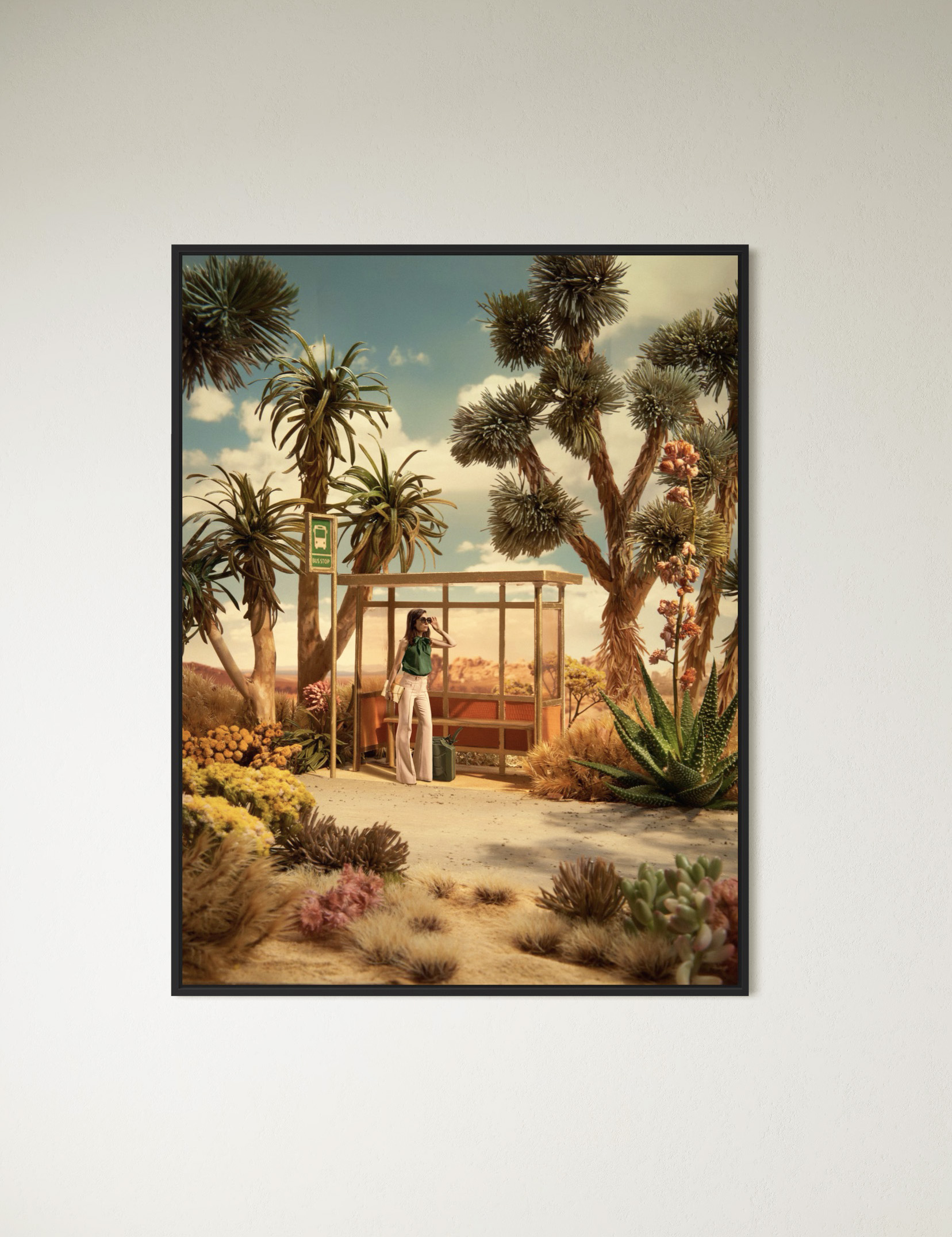 “Les Demoiselles,” it's a photographic series that portraits young women in hand-built miniature worlds. Inspired by the aesthetics of the 1960s and 70s, and her childhood imagery, these vividly colored compositions bringing both nostalgia and a playful sense of displacement. Each scene deliberately blurs perception: the miniature appears real, while the characters frozen in enigmatic situations inhabit a world where illusion becomes believable. Through this visual language, a parallel, poetic, and orderly universe emerges, offering refuge from the complexity of reality.
