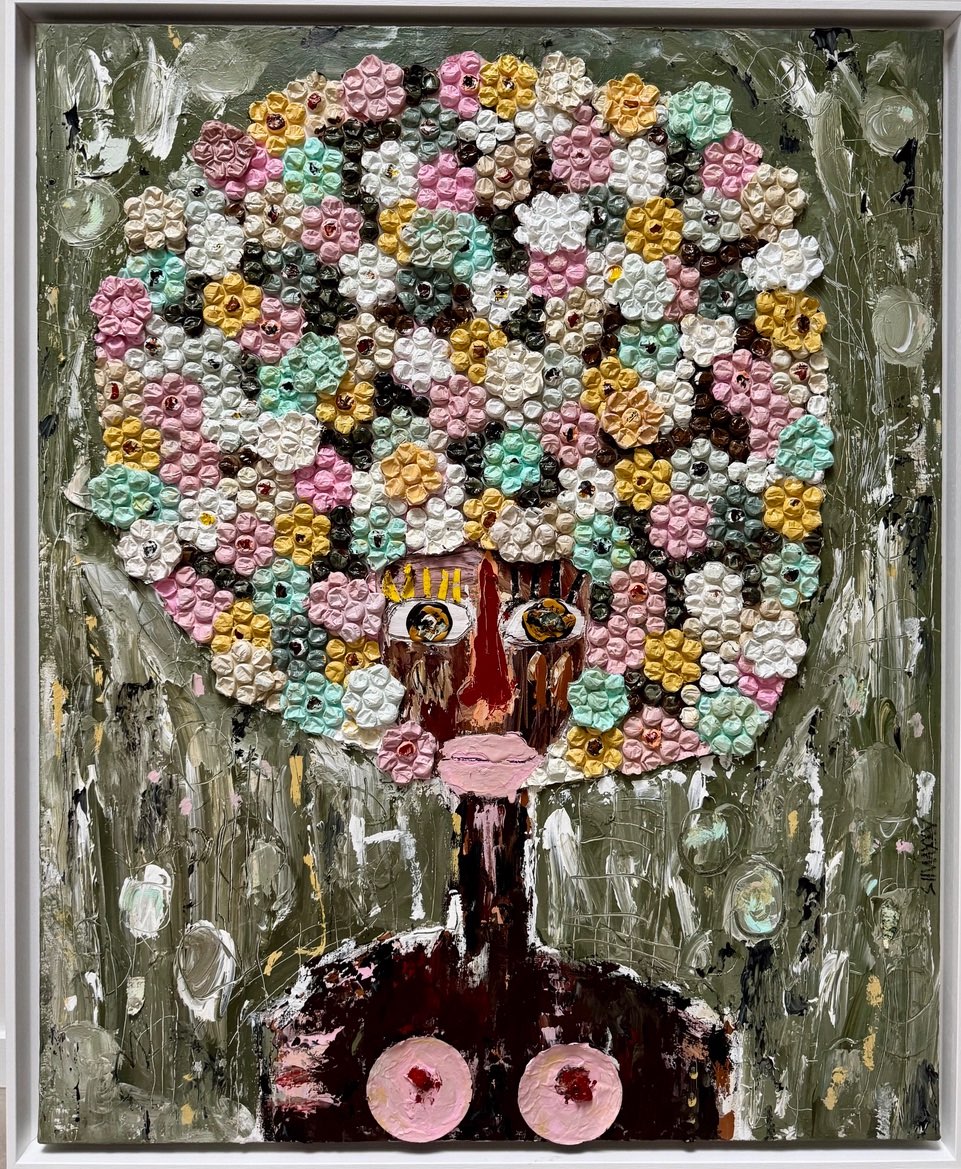 Inspired by Basquiat, Raushenberg or Combas, the work of Silvia Calmejane is however deeply personal. In each of her compositions, the artist scatters with the brush traces of her history, travels and inspirations. The words in her paintings, mysterious incantations, recall in that sense the hippie slogans of the 1970s, an important period for the artist.