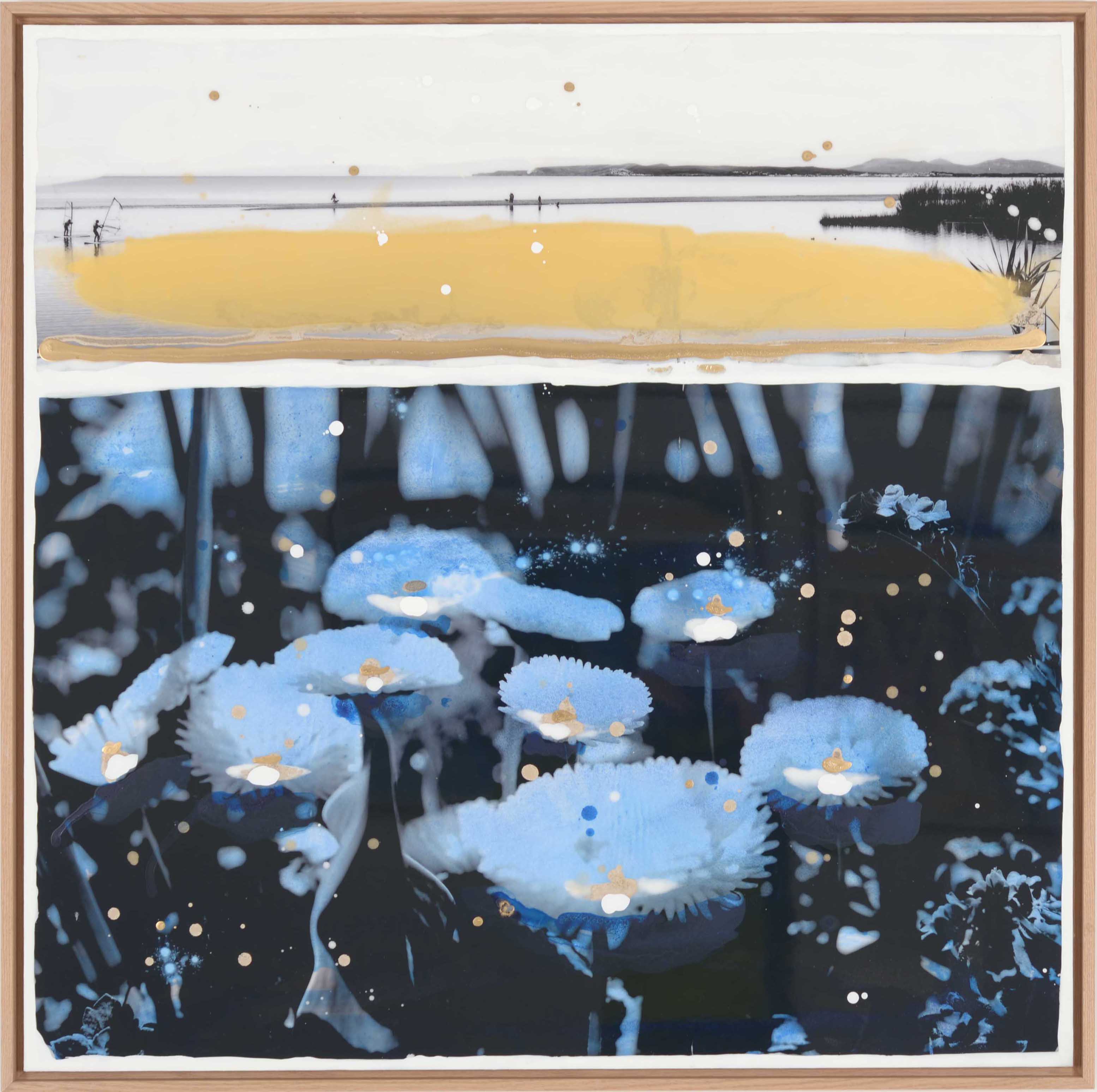 If painting remains his first passion, Edouard Buzon has nevertheless not hesitated to invest photography. By making a sporadic use of it, he has created singular compositions where the spectator's eye is permanently solicited by many fragments of various images. In Buzon's alternative worlds, seaside resorts buildings get along with isolated animals, lost strollers and different varieties of exotic plants. These unexpected connections give his work a singular poetic force. However, this use remains anecdotal : "I love photography, it has always fascinated me. But it is not my medium." acknowledges the artist. "I need to appropriate things, images and do it with my hands, armed with colors that I make myself from pigments. Photography is only a step in my work.". Filled with strange and dreamlike landscapes, Edouard Buzon's work is an interior travel diary populated with silent and anonymous characters. Represented from behind, they invite us to join them in their poetic wanderings.