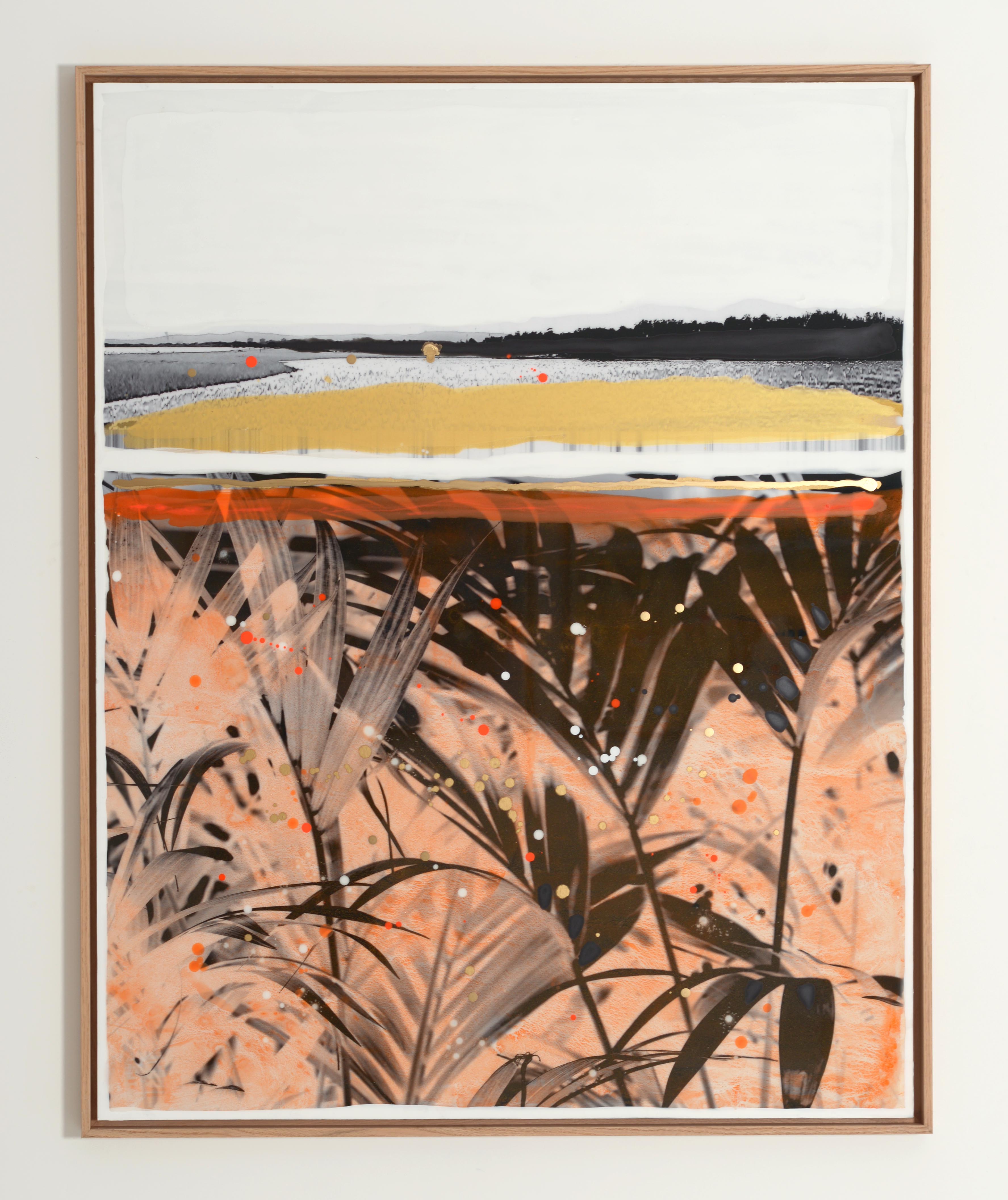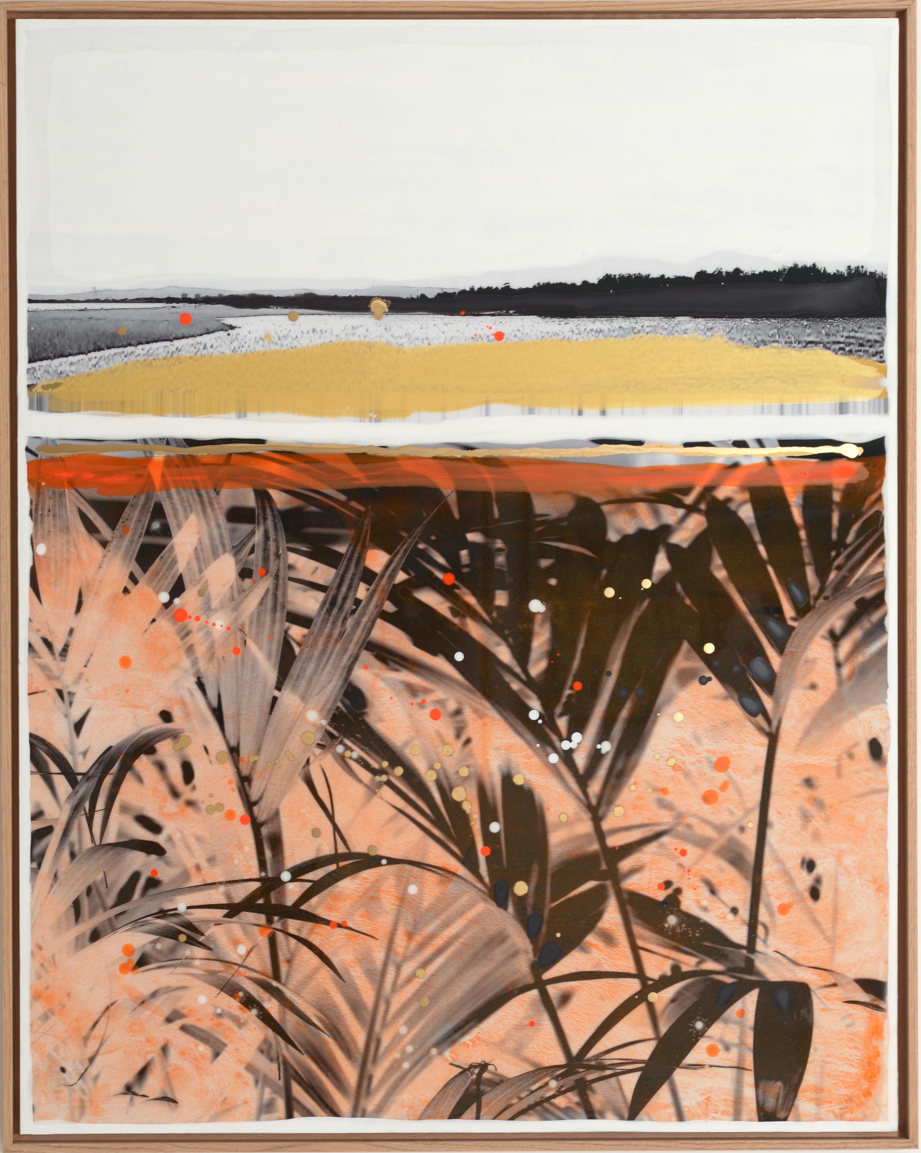 If painting remains his first passion, Edouard Buzon has nevertheless not hesitated to invest photography. By making a sporadic use of it, he has created singular compositions where the spectator's eye is permanently solicited by many fragments of various images. In Buzon's alternative worlds, seaside resorts buildings get along with isolated animals, lost strollers and different varieties of exotic plants. These unexpected connections give his work a singular poetic force. However, this use remains anecdotal : "I love photography, it has always fascinated me. But it is not my medium." acknowledges the artist. "I need to appropriate things, images and do it with my hands, armed with colors that I make myself from pigments. Photography is only a step in my work.". Filled with strange and dreamlike landscapes, Edouard Buzon's work is an interior travel diary populated with silent and anonymous characters. Represented from behind, they invite us to join them in their poetic wanderings.