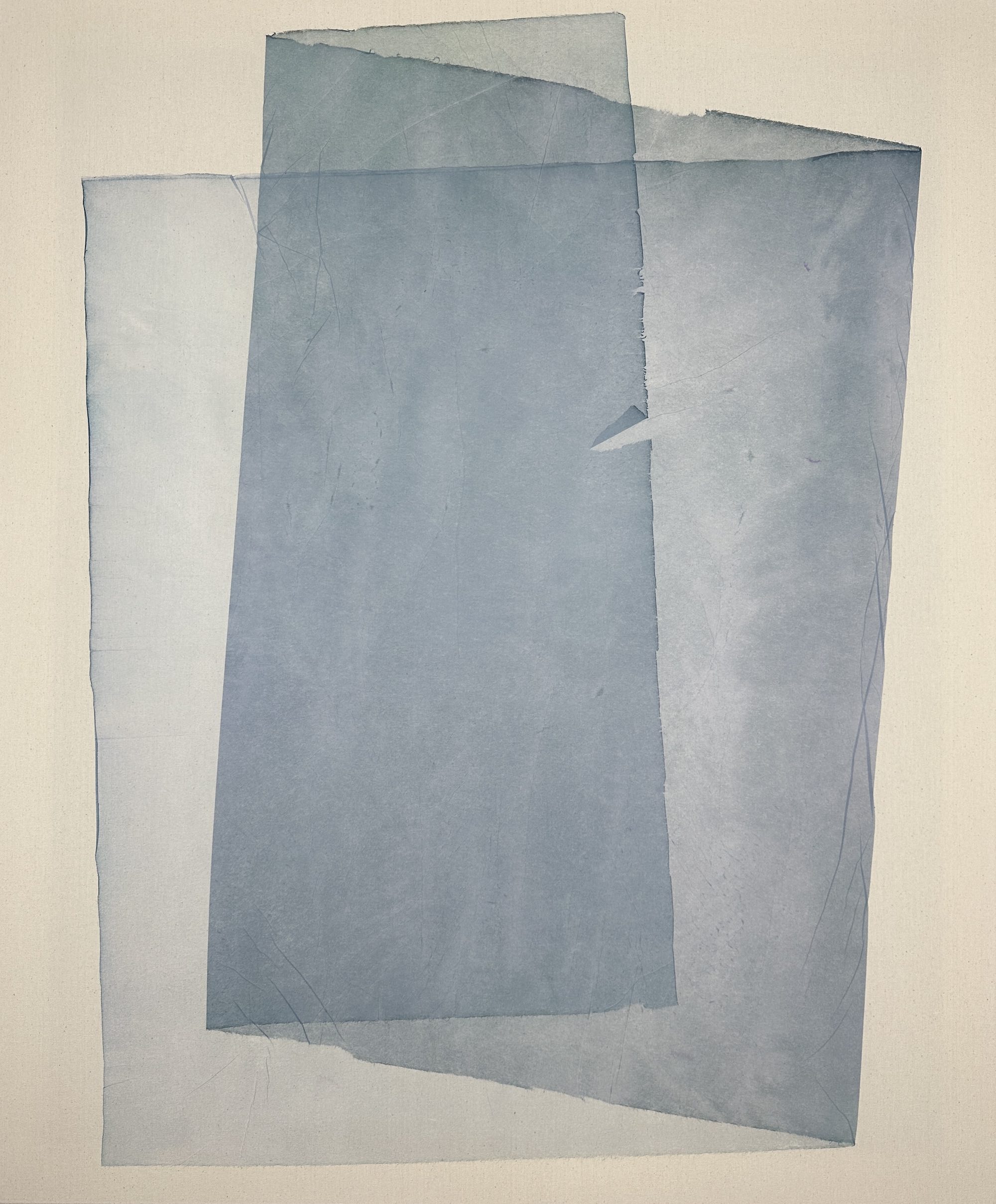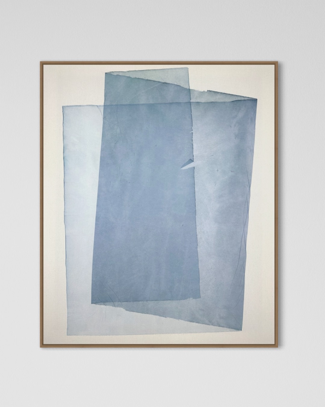 Her work is created using hand-painted, ultra-thin fine art paper, layered, and folded over raw cotton canvas to evoke quiet movements within simple forms. Each piece reflects her fascination with contrast between control and freedom, transparency, and opacity. Subtle irregularities, visible folds, and traces of the hand are embraced as intrinsic elements of the work's character, celebrating the beauty found in imperfection.