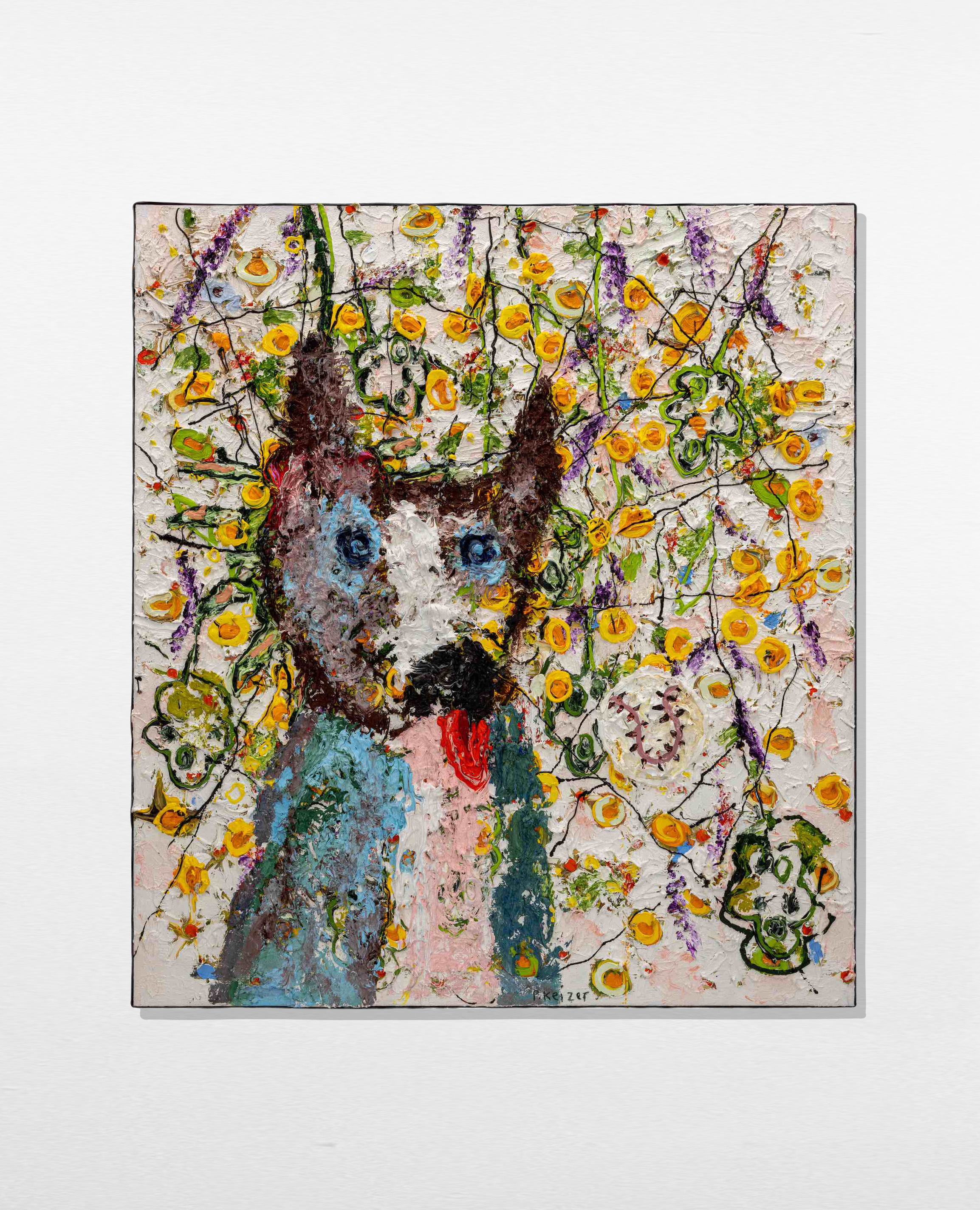 Both magnificient and absurd, Peter Keizer's work is about a world where only positive feelings arise: full of flowers, trees, mountainous landscapes and dogs. His themes are closely connected to childhood memories; as if time had turned his memories into idealized, colorful works of art. The thick oil paint is mostly used directly out of the tube, and gives a sculptural aspect to the paintings: thus enhancing the presence of the colours. "Lie on the grass and look up to the trees, if you have a young mind, you'll see what I painted" - Peter Keizer says.