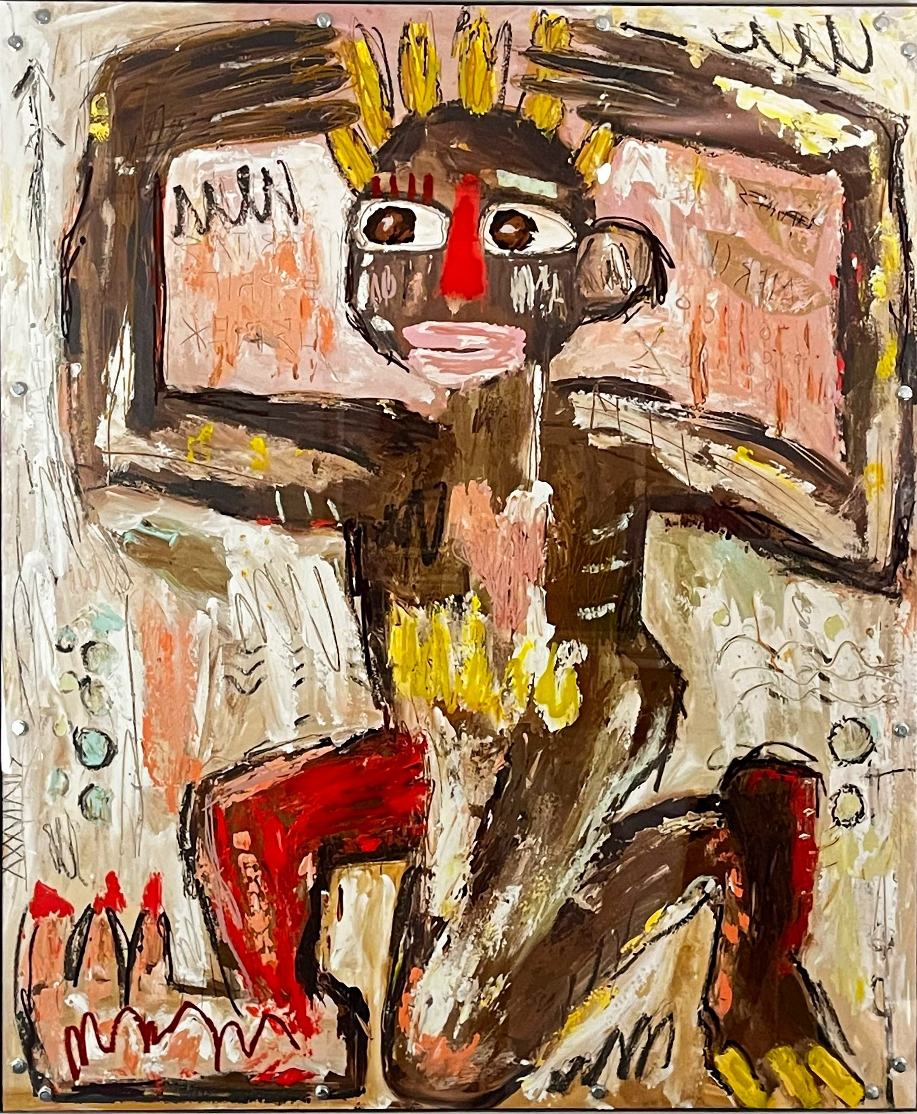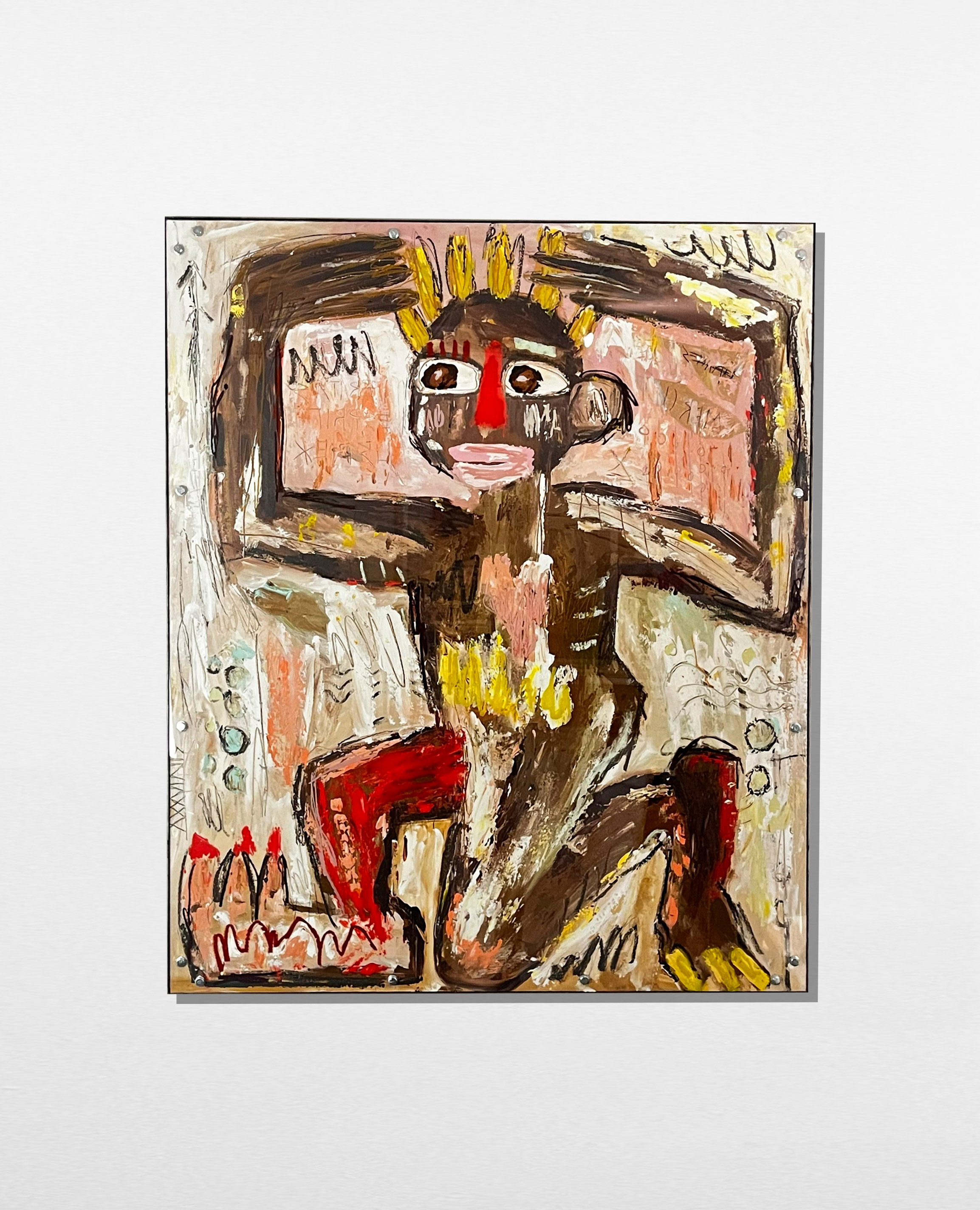 Inspired by Basquiat, Raushenberg or Combas, the work of Silvia Calmejane is however deeply personal. In each of her compositions, the artist scatters with the brush traces of her history, travels and inspirations. The words in her paintings, mysterious incantations, recall in that sense the hippie slogans of the 1970s, an important period for the artist.