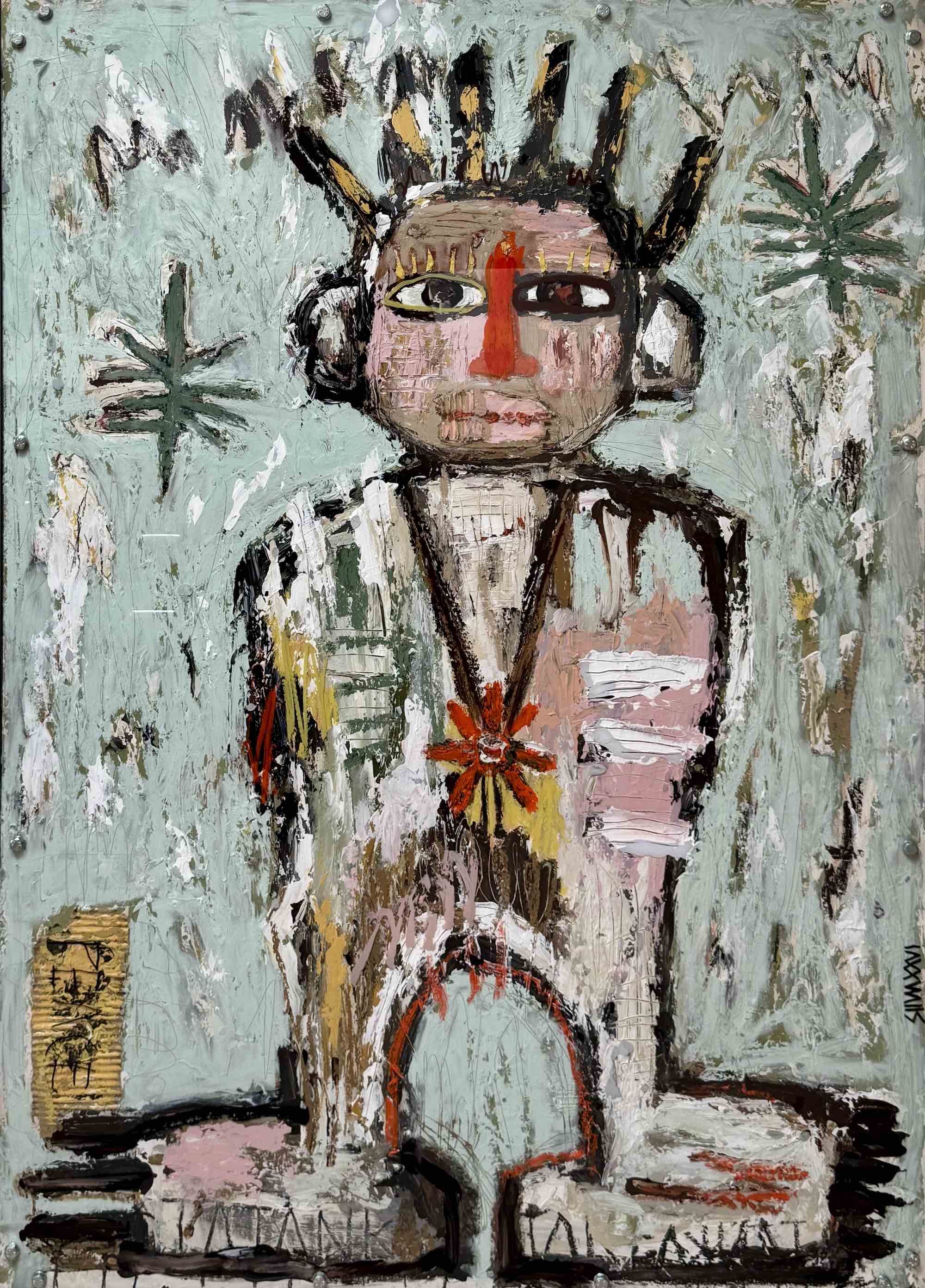 Mixed media on canvas. Wooden frame
