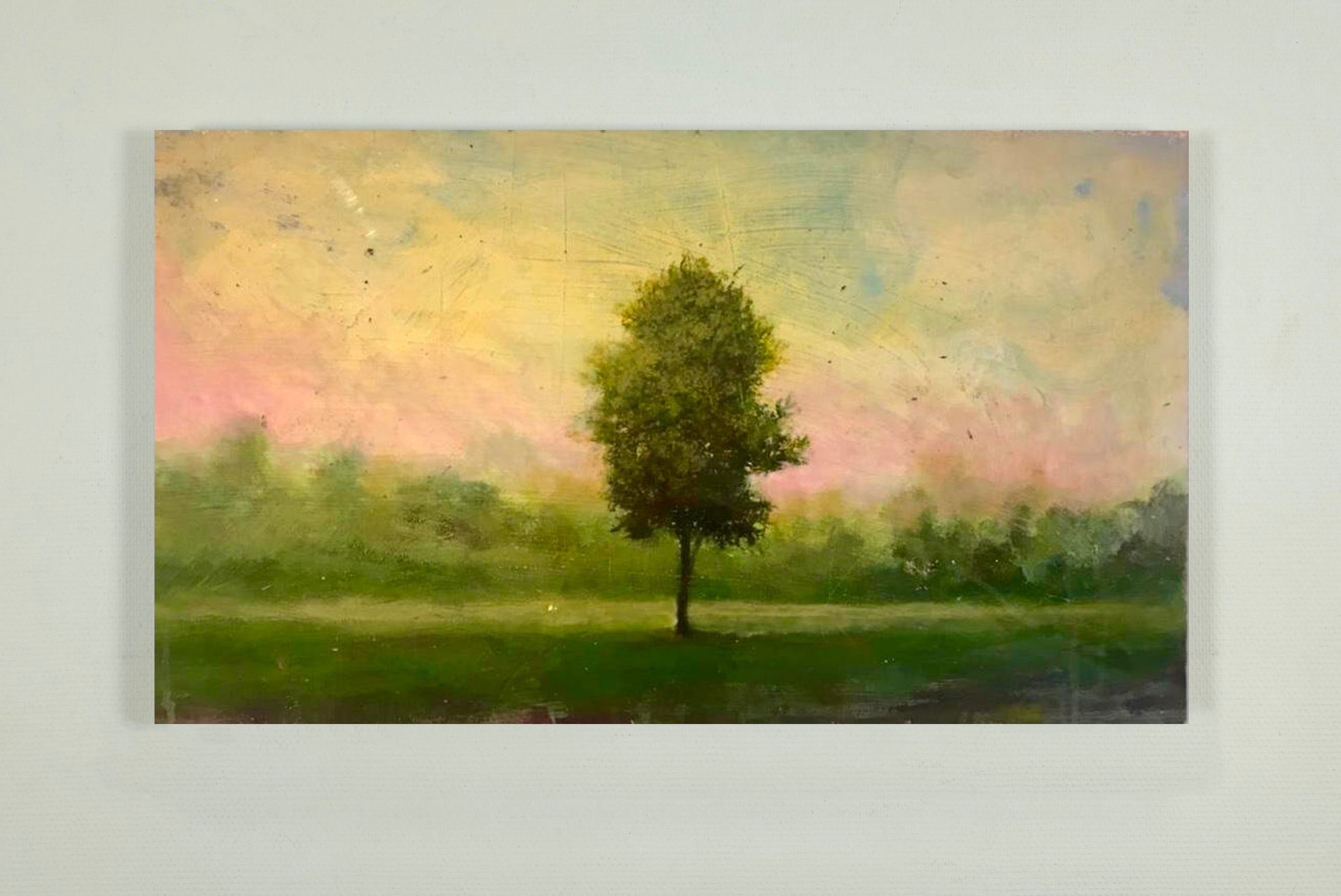 Les arbres que peint Peter ne sont pas la copie d'une géographie existante. Il lui arrive de peindre d'après des photos, mais, la plupart du temps ces arbres sont davantage des réminiscences. Cependant, qu'ils existent ou non, il considère que son travail s'effectue plus autour de la technique, de la façon dont il perçoit le monde, plutôt que la réalité du monde elle-même. A quelques kilomètres de Montréal, Peter a un chalet au mileu de la forêt, qui est devenu son repaire, un endroit où il aime peindre. Lorsqu'il s'y met, il commence par peindre à l'huile sur bois, puis la partie plus créative commence : il applique des touches de peinture acrylique et plusieurs couches de vernis époxy, qu'il fabrique lui-même. Ce procédé lui a été inspiré par les vernissages des salons de peinture académiques du XIXe siècle, une manière d'embellir les tableaux et de les conserver. Pour l'artiste, il est question de mettre en scène des paysages évocateurs, qui vont éveiller en chacun des souvenirs, des rêves, une impression de déjà-vu. Mais à la seconde lecture, si on y voit plus qu'un paysage mais une vraie réflexion sur l'art, la représentation de la nature et le tableau en tant qu'objet en soi, c'est qu'il aura réussi son pari.