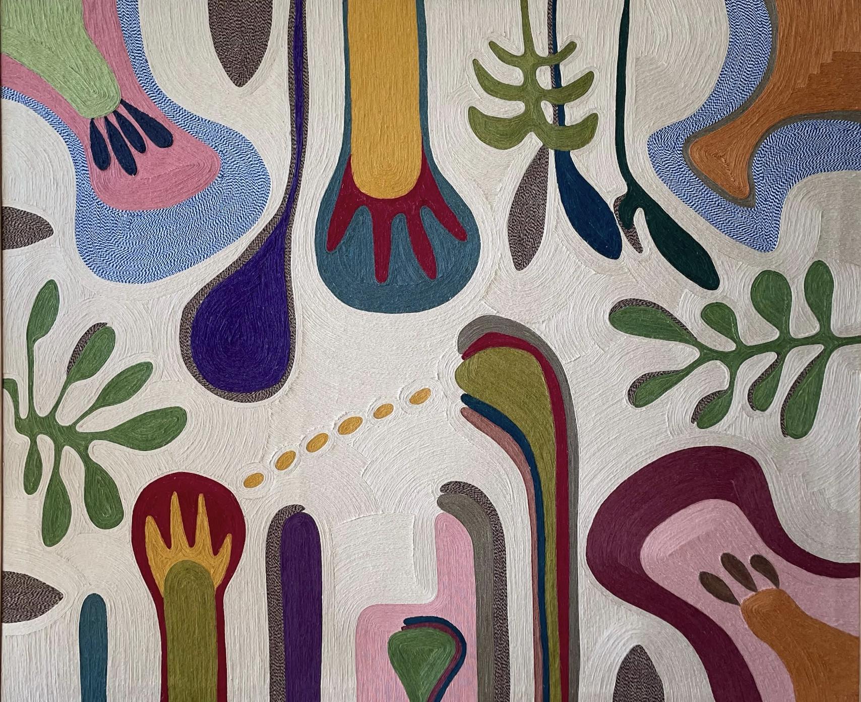 Quant aux thèmes, ils s'imposent d'eux-mêmes : des motifs floraux argentins comme les fleurs de cardon, des souvenirs de voyage et autres impressions de soleil levant, avec quelquefois des inspirations aborigènes. «J'aime aussi les paysages de montagne, mais à part mon tableau, Himalaya, dédié à la panthère des neiges, toute présence humaine ou animale est bannie de mon travail. Celui-ci est entièrement dédié à la nature, mystérieuse, belle et sauvage.»