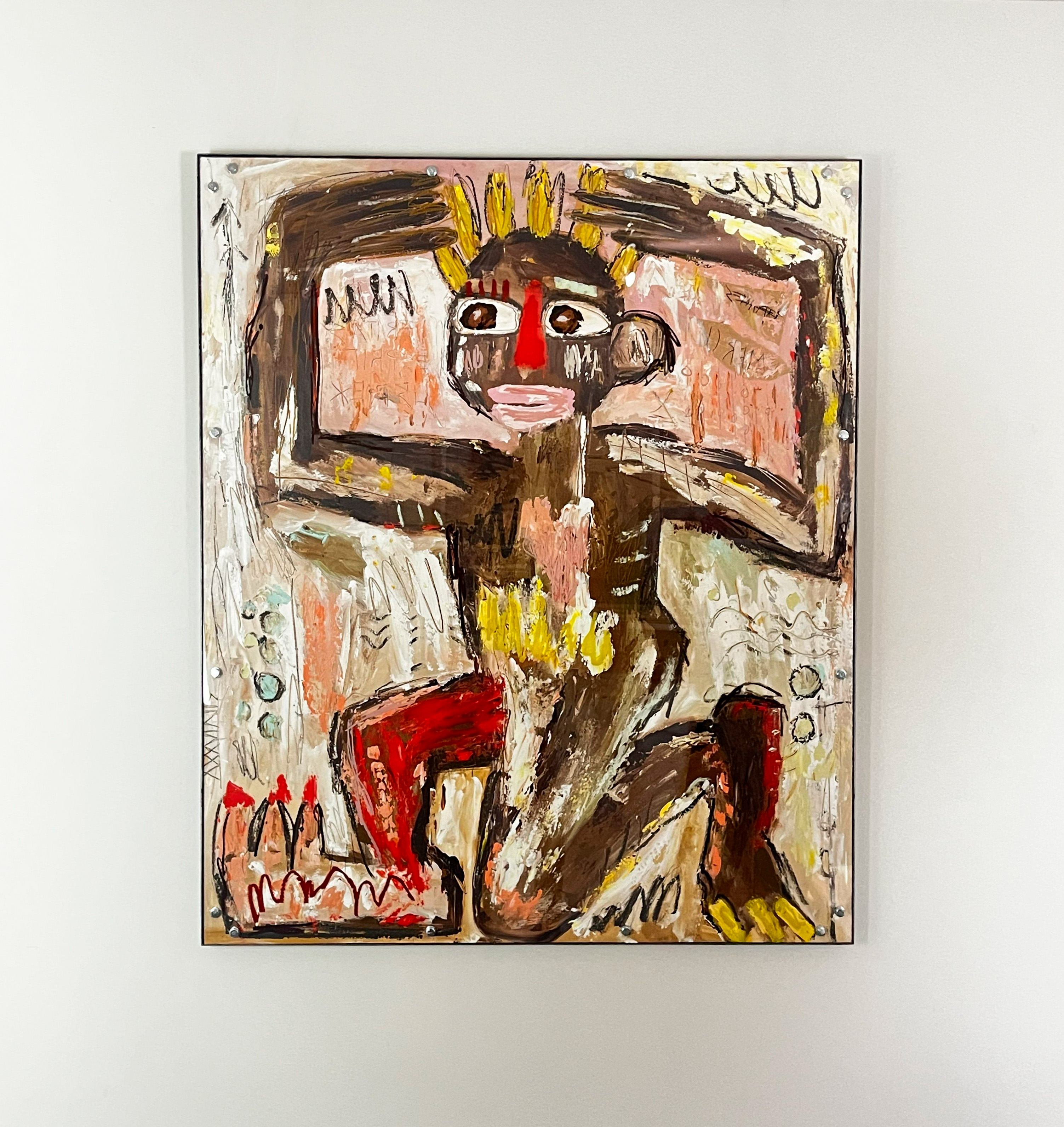 Inspirée par Basquiat, Rauschenberg ou encore Combas, l'oeuvre de Silvia Calmejane n'en n'est pas pour autant impersonnelle. Dans chacune de ses compositions, ce sont des traces de son histoire, de ses voyages ou encore de de ses inspirations qu'elle dissémine au gré du pinceau. Les mots dispersés dans ses oeuvres, mystérieuses incantations, rappellent ainsi les slogans hippies des années 1970, période chère au coeur de l'artiste.