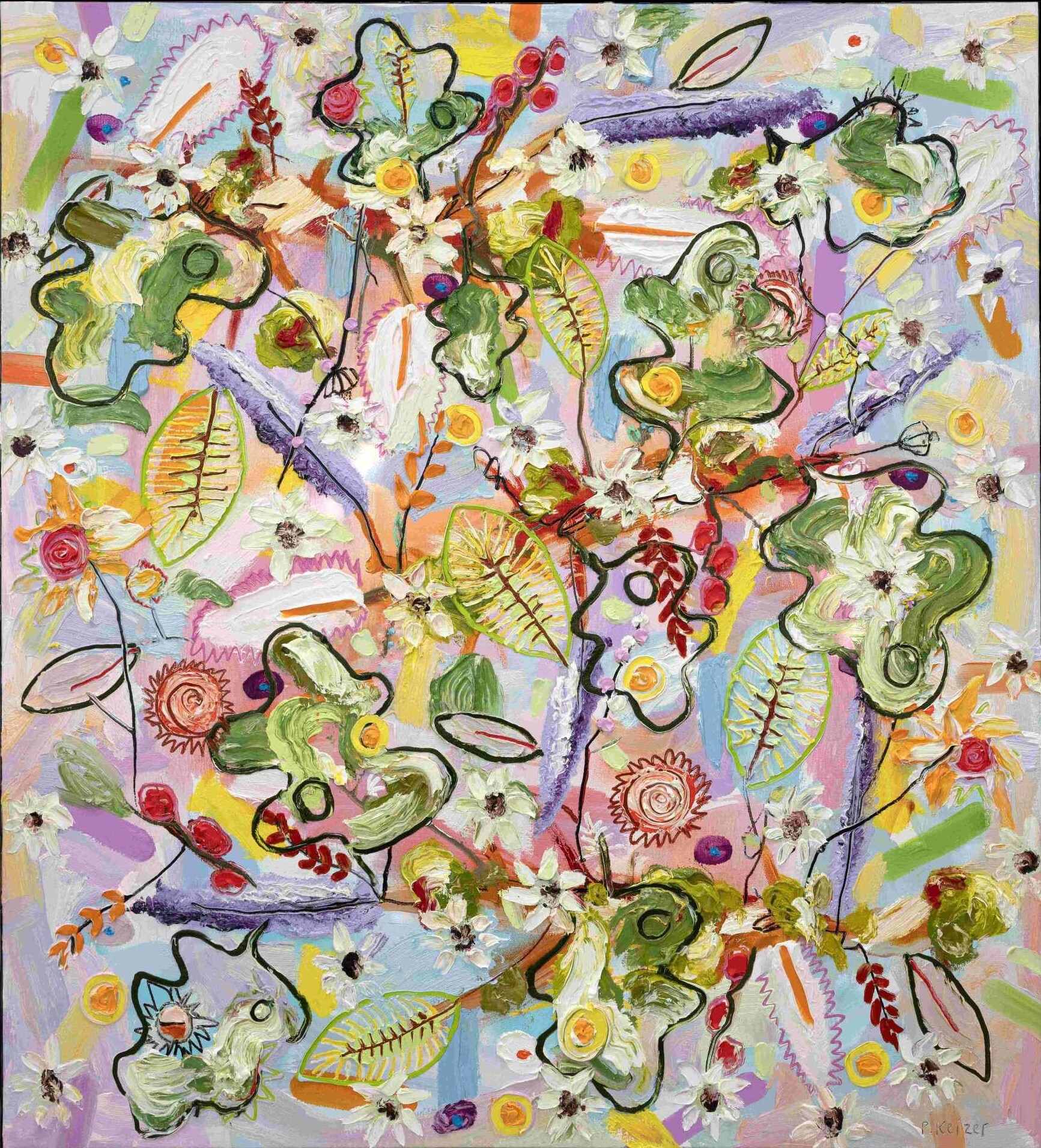 À la fois magnifique et absurde, le travail de Peter Keizer porte sur un monde où seuls des sentiments positifs surgissent : remplis de fleurs, d'arbres, de paysages montagneux et de chiens. Ses thèmes sont étroitement liés aux souvenirs d'enfance, comme si le temps avait transformé ses souvenirs en oeuvres d'art idéalisées et colorées. La peinture à l'huile épaisse est surtout utilisée directement à l'extérieur du tube, et donne un aspect sculptural aux tableaux : ce qui renforce la présence des couleurs. "Allongez-vous sur l'herbe et levez les yeux vers les arbres, si vous avez un esprit jeune, vous verrez ce que j'ai peint" - dit Peter Keizer.