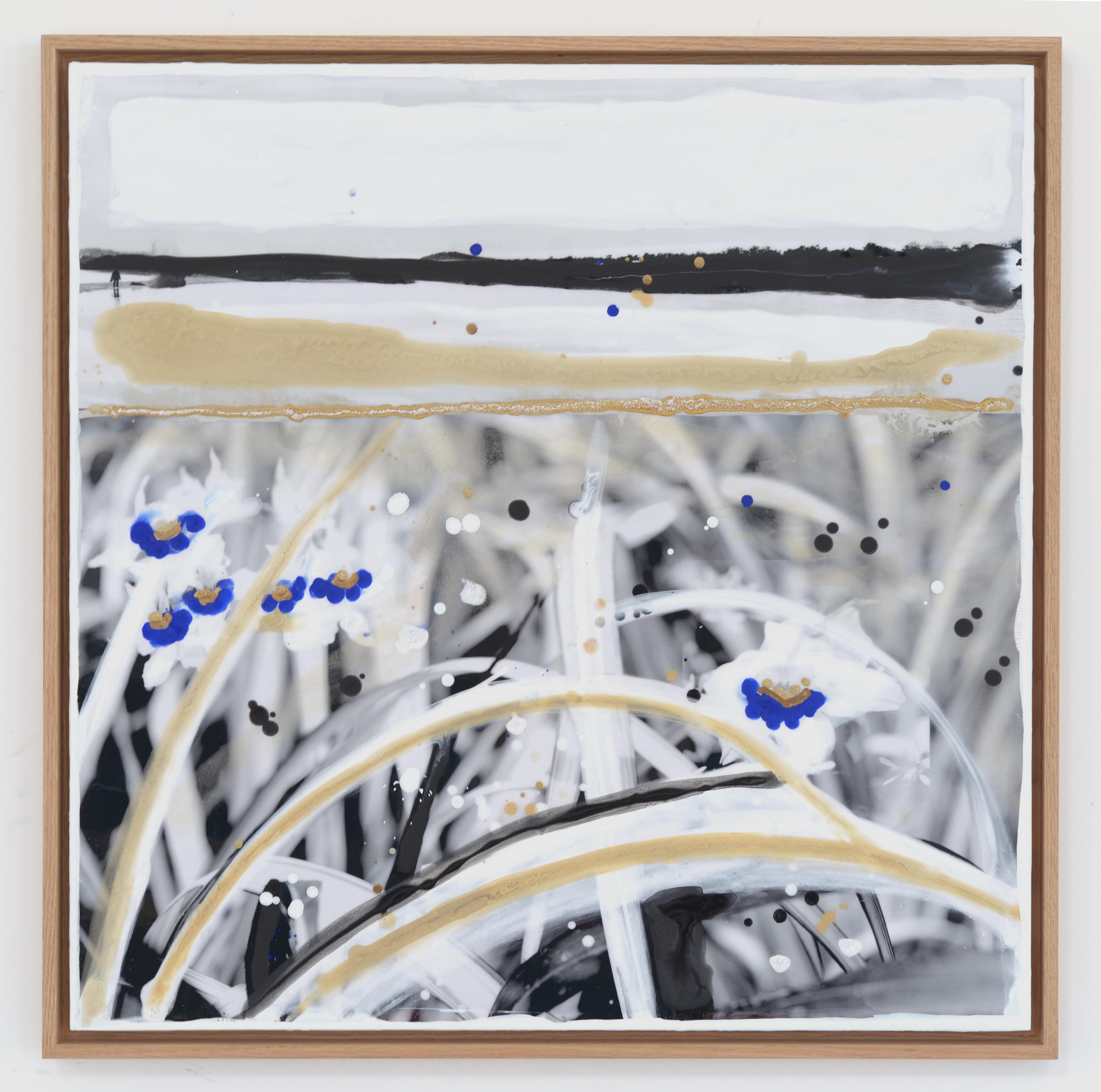 Si la peinture demeure sa première passion, Edouard Buzon n'a néanmoins pas hésité au cours de sa pratique à investir un autre médium : la photographie. En en faisant une utilisation sporadique, il donne à voir des compositions singulières où l'oeil du spectateur est en permanence sollicité par des fragments d'images multiples. Dans les mondes alternatifs de Buzon, les buildings des stations balnéaires côtoient des animaux isolés, des flâneurs égarés tout comme différentes variétés de plantes exotiques. Ces mises en relation inattendues confèrent à son oeuvre une force poétique singulière. Cette utilisation reste cependant anecdotique : « J'adore la photo, elle m'a toujours passionné. Mais ce n'est pas mon médium. » reconnait l'artiste. « J'ai besoin de m'approprier les choses, les images et de le faire avec mes mains, armé des couleurs que je fabrique moi-même à partir de pigments. La photo n'est qu'une étape dans mon travail. ». Remplie de paysages étranges et oniriques, l'oeuvre d'Edouard Buzon ressemble à un carnet de voyages intérieurs peuplés de personnages silencieux et anonymes. Représentés de dos, ils nous invitent à les rejoindre dans leur errance poétique.