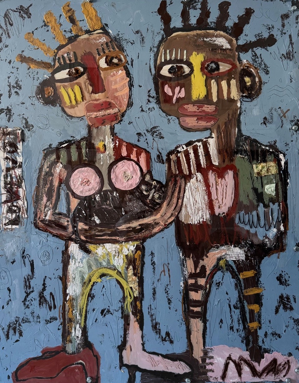 Inspirée par Basquiat, Rauschenberg ou encore Combas, l'oeuvre de Silvia Calmejane n'en n'est pas pour autant impersonnelle. Dans chacune de ses compositions, ce sont des traces de son histoire, de ses voyages ou encore de de ses inspirations qu'elle dissémine au gré du pinceau. Les mots dispersés dans ses oeuvres, mystérieuses incantations, rappellent ainsi les slogans hippies des années 1970, période chère au coeur de l'artiste.