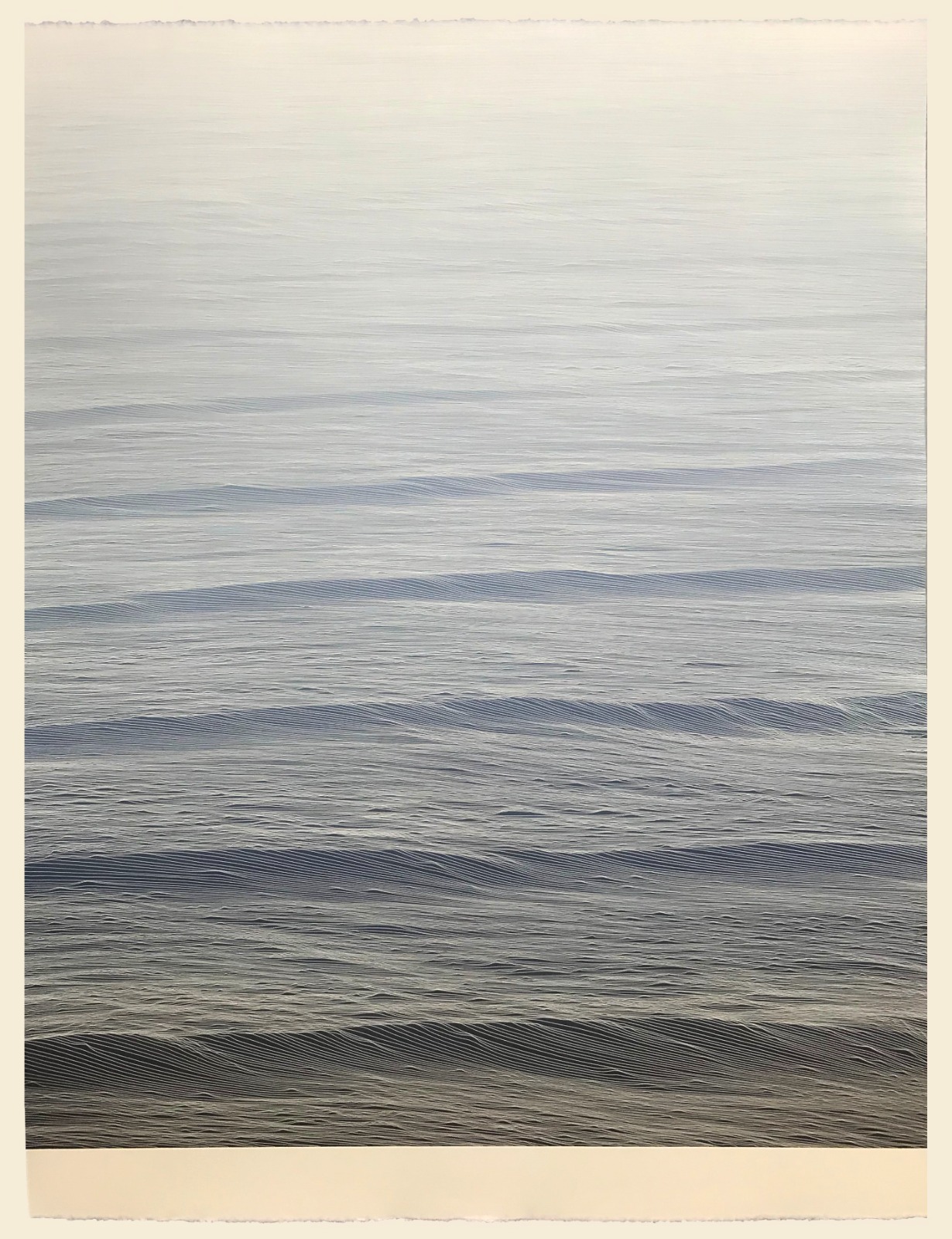 « Pour dessiner, je pose comme condition que toutes les marques soient visibles et qu'aucune correction ne soit faite. J'applique un système dans lequel une première ligne préfigure la ligne de fond et si une irrégularité se produit, elle est transmise à la ligne suivante. Des processus similaires se produisent dans la nature, de sorte que l'oeuvre d'art finale se rattache à des motifs et des formes familières telles que les surfaces, les tissus, les fluides, l'orographie, les vagues, etc.