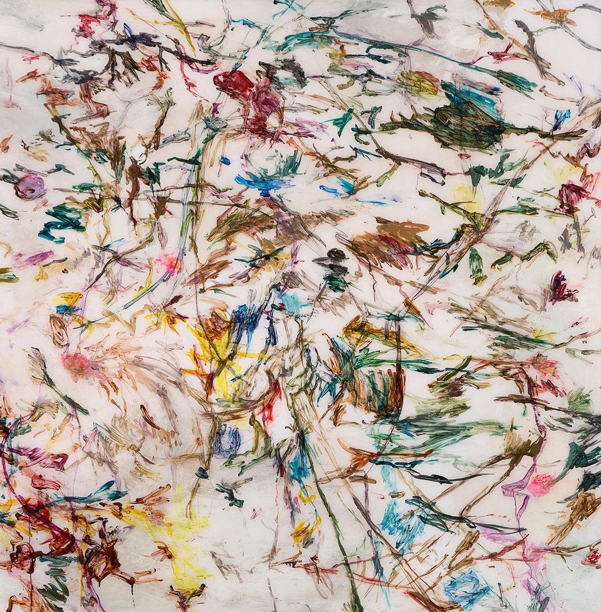 Les peintures de Rosa Galindo sont des images oniriques de grand format représentant un monde imaginaire. En expérimentant les possibilités offertes par différentes techniques et matériaux, l'artiste travaille souvent au revers du Plexiglas, explorant ainsi le jeu entre transparence et opacité.
