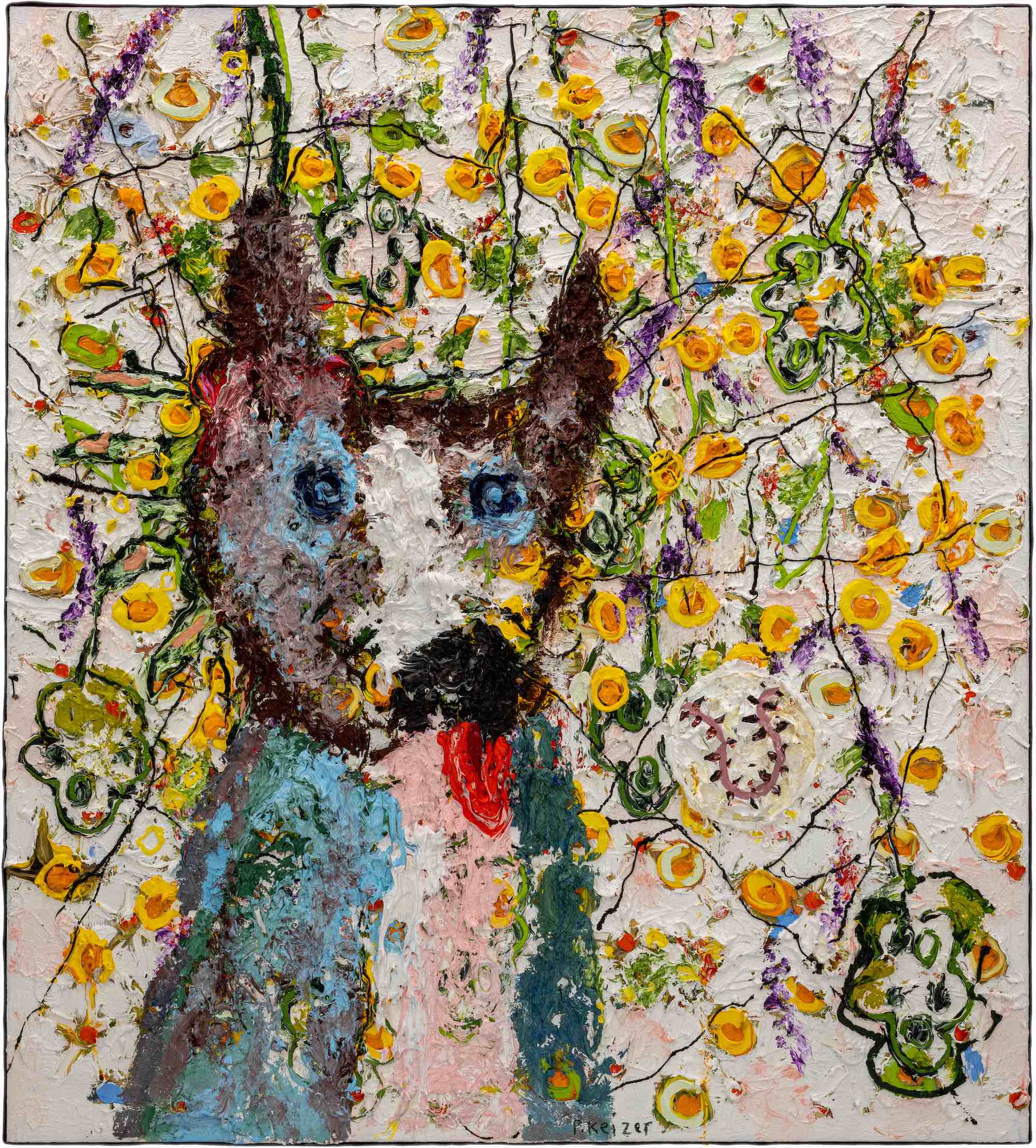 À la fois magnifique et absurde, le travail de Peter Keizer porte sur un monde où seuls des sentiments positifs surgissent : remplis de fleurs, d'arbres, de paysages montagneux et de chiens. Ses thèmes sont étroitement liés aux souvenirs d'enfance, comme si le temps avait transformé ses souvenirs en oeuvres d'art idéalisées et colorées. La peinture à l'huile épaisse est surtout utilisée directement à l'extérieur du tube, et donne un aspect sculptural aux tableaux : ce qui renforce la présence des couleurs. "Allongez-vous sur l'herbe et levez les yeux vers les arbres, si vous avez un esprit jeune, vous verrez ce que j'ai peint" - dit Peter Keizer.