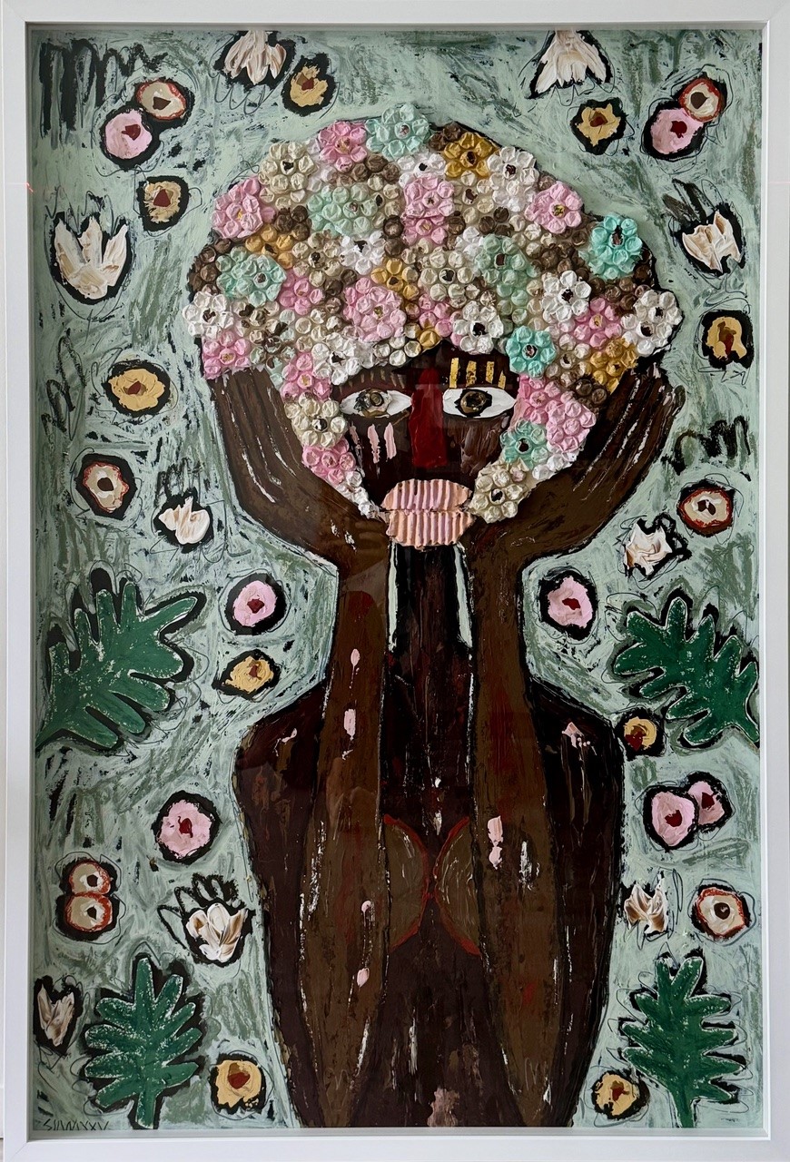 Inspirée par Basquiat, Rauschenberg ou encore Combas, l'oeuvre de Silvia Calmejane n'en n'est pas pour autant impersonnelle. Dans chacune de ses compositions, ce sont des traces de son histoire, de ses voyages ou encore de de ses inspirations qu'elle dissémine au gré du pinceau. Les mots dispersés dans ses oeuvres, mystérieuses incantations, rappellent ainsi les slogans hippies des années 1970, période chère au coeur de l'artiste.
