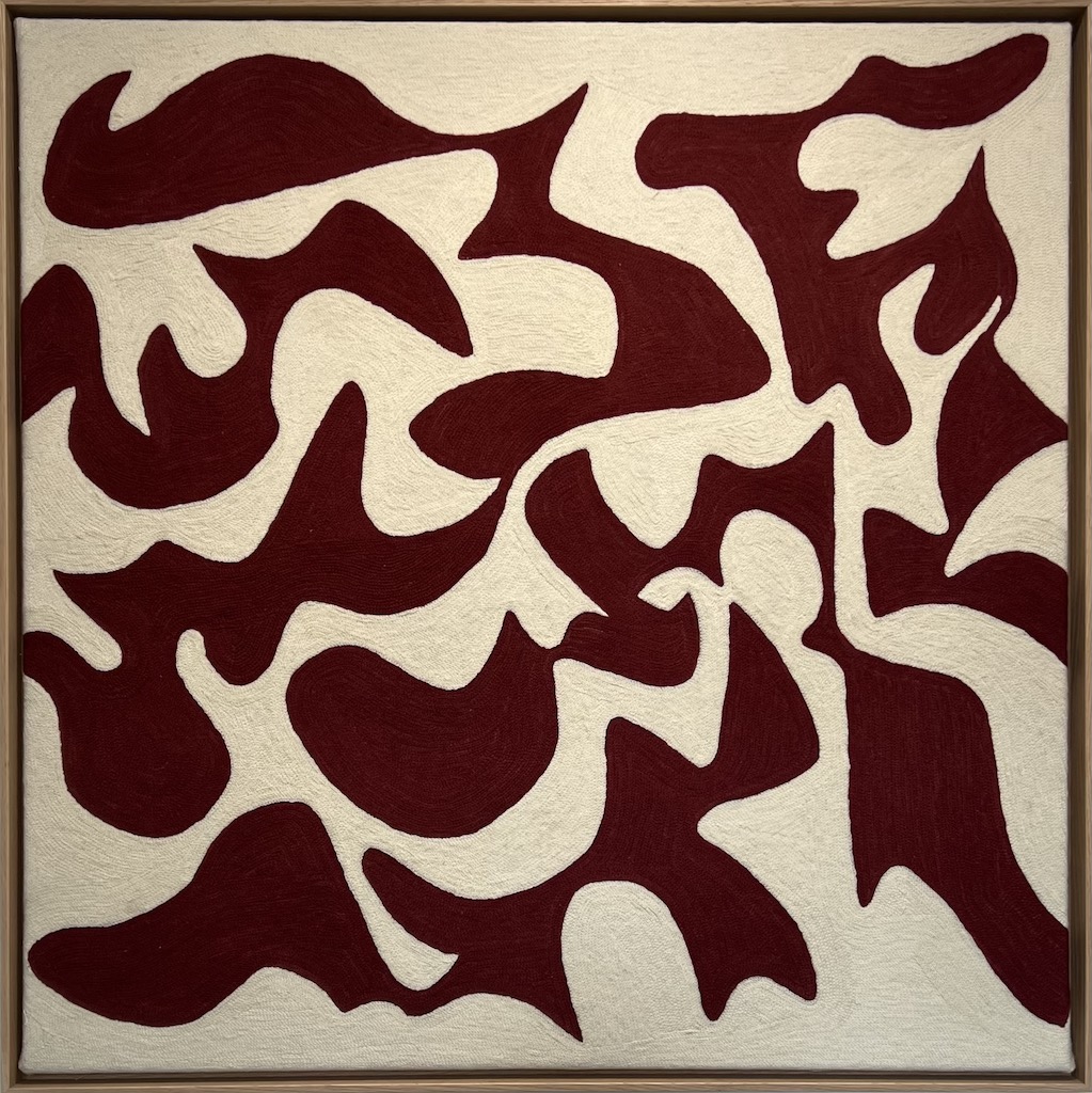 Parvaze, un artiste talentueux originaire de Cachemire spécialisé dans le point de chaînette, met en valeur la beauté exquise de cet ancien artisanat dans ses oeuvres. Utilisant un fil peigné de haute qualité et des techniques traditionnelles, Parvaze crée des motifs complexes sur du tissu hessain, en employant un outil à crochet appelé "Aurah" avec une habile précision. Ses oeuvres rendent non seulement hommage au riche héritage de l'artisanat cachemirien, mais reflètent également une réinterprétation contemporaine des influences de grands maîtres tels que Kandinski et Miro.