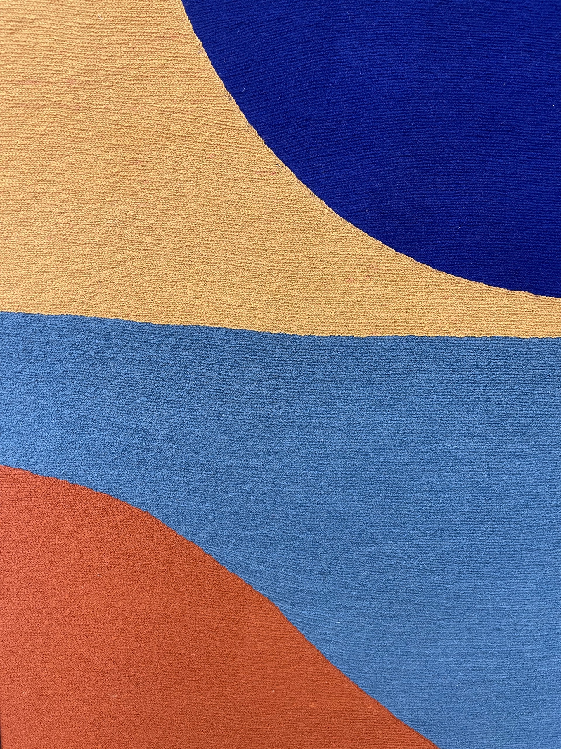 Parvaze, un artiste talentueux originaire de Cachemire spécialisé dans le point de chaînette, met en valeur la beauté exquise de cet ancien artisanat dans ses oeuvres. Utilisant un fil peigné de haute qualité et des techniques traditionnelles, Parvaze crée des motifs complexes sur du tissu hessain, en employant un outil à crochet appelé "Aurah" avec une habile précision. Ses oeuvres rendent non seulement hommage au riche héritage de l'artisanat cachemirien, mais reflètent également une réinterprétation contemporaine des influences de grands maîtres tels que Kandinski et Miro.