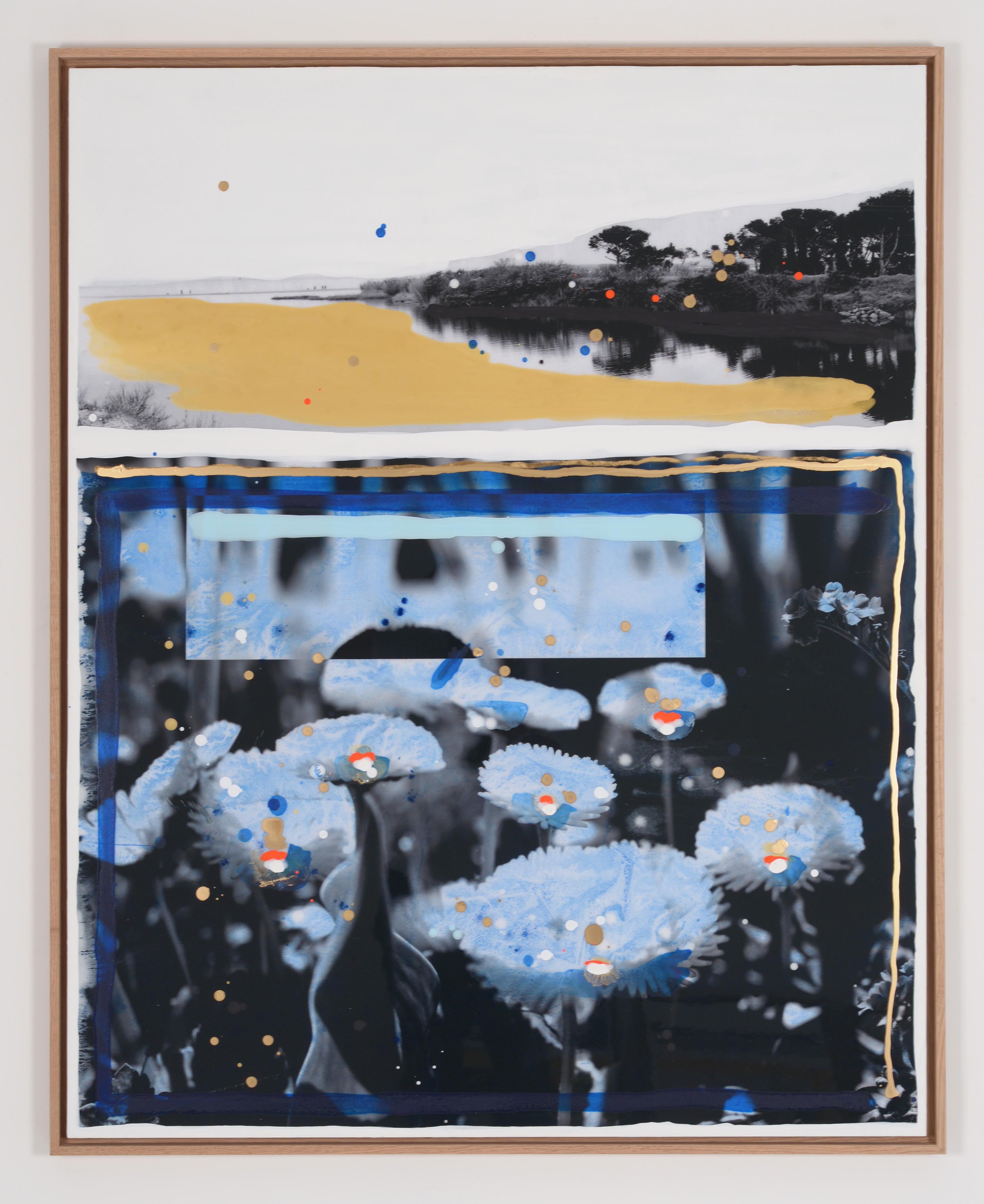 Si la peinture demeure sa première passion, Edouard Buzon n'a néanmoins pas hésité au cours de sa pratique à investir un autre médium : la photographie. En en faisant une utilisation sporadique, il donne à voir des compositions singulières où l'oeil du spectateur est en permanence sollicité par des fragments d'images multiples. Dans les mondes alternatifs de Buzon, les buildings des stations balnéaires côtoient des animaux isolés, des flâneurs égarés tout comme différentes variétés de plantes exotiques. Ces mises en relation inattendues confèrent à son oeuvre une force poétique singulière. Cette utilisation reste cependant anecdotique : « J'adore la photo, elle m'a toujours passionné. Mais ce n'est pas mon médium. » reconnait l'artiste. « J'ai besoin de m'approprier les choses, les images et de le faire avec mes mains, armé des couleurs que je fabrique moi-même à partir de pigments. La photo n'est qu'une étape dans mon travail. ». Remplie de paysages étranges et oniriques, l'oeuvre d'Edouard Buzon ressemble à un carnet de voyages intérieurs peuplés de personnages silencieux et anonymes. Représentés de dos, ils nous invitent à les rejoindre dans leur errance poétique.