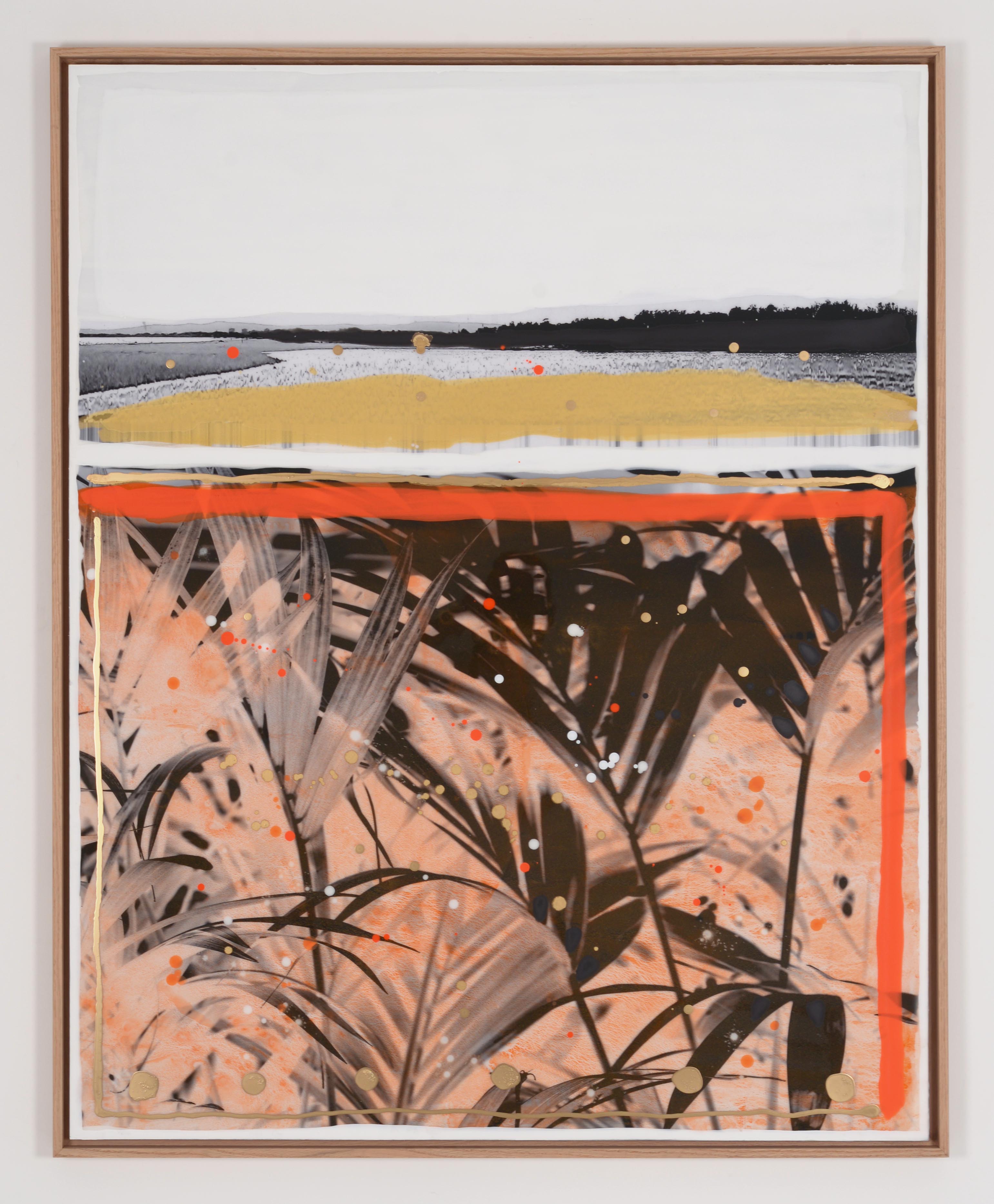 Si la peinture demeure sa première passion, Edouard Buzon n'a néanmoins pas hésité au cours de sa pratique à investir un autre médium : la photographie. En en faisant une utilisation sporadique, il donne à voir des compositions singulières où l'oeil du spectateur est en permanence sollicité par des fragments d'images multiples. Dans les mondes alternatifs de Buzon, les buildings des stations balnéaires côtoient des animaux isolés, des flâneurs égarés tout comme différentes variétés de plantes exotiques. Ces mises en relation inattendues confèrent à son oeuvre une force poétique singulière. Cette utilisation reste cependant anecdotique : « J'adore la photo, elle m'a toujours passionné. Mais ce n'est pas mon médium. » reconnait l'artiste. « J'ai besoin de m'approprier les choses, les images et de le faire avec mes mains, armé des couleurs que je fabrique moi-même à partir de pigments. La photo n'est qu'une étape dans mon travail. ». Remplie de paysages étranges et oniriques, l'oeuvre d'Edouard Buzon ressemble à un carnet de voyages intérieurs peuplés de personnages silencieux et anonymes. Représentés de dos, ils nous invitent à les rejoindre dans leur errance poétique.