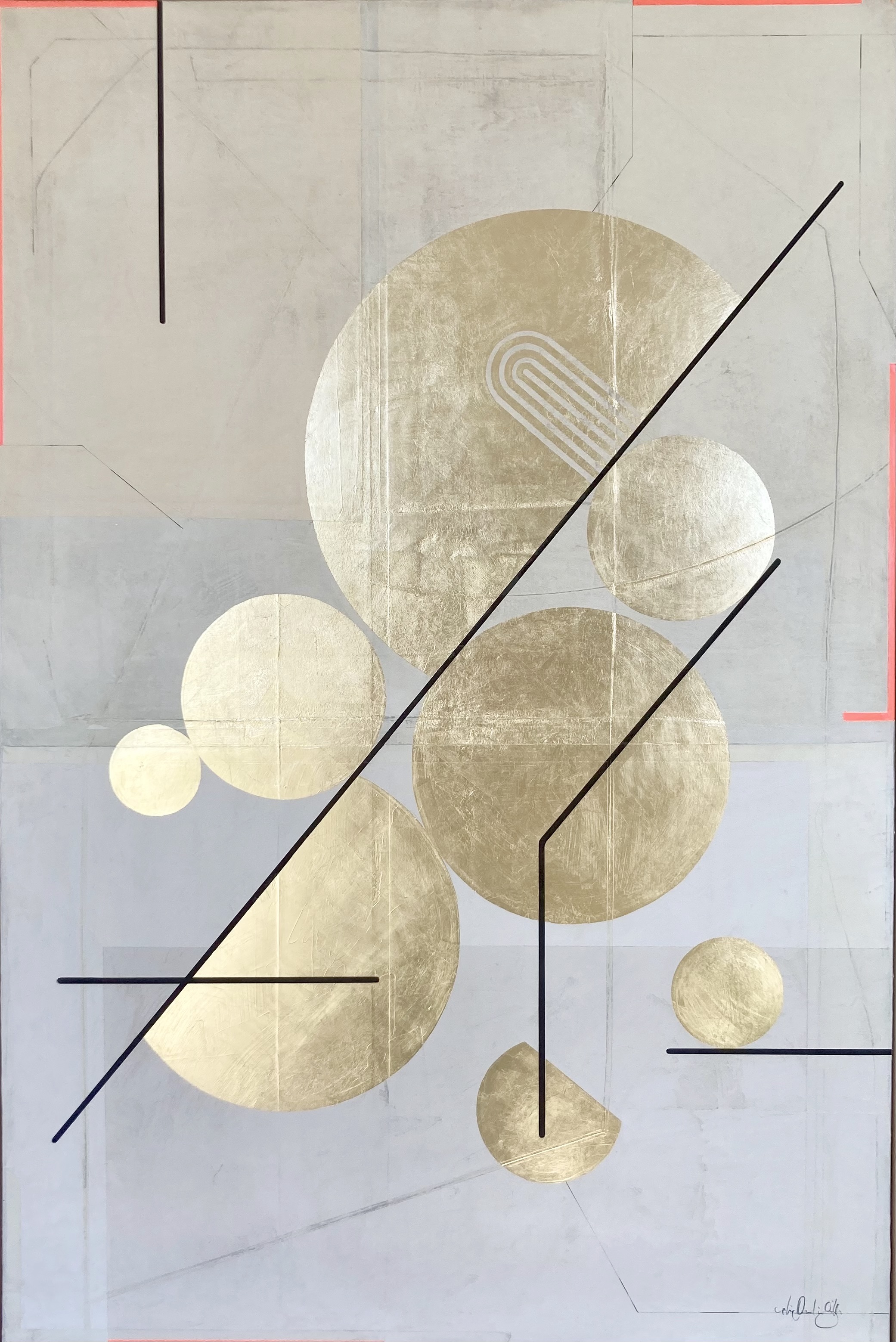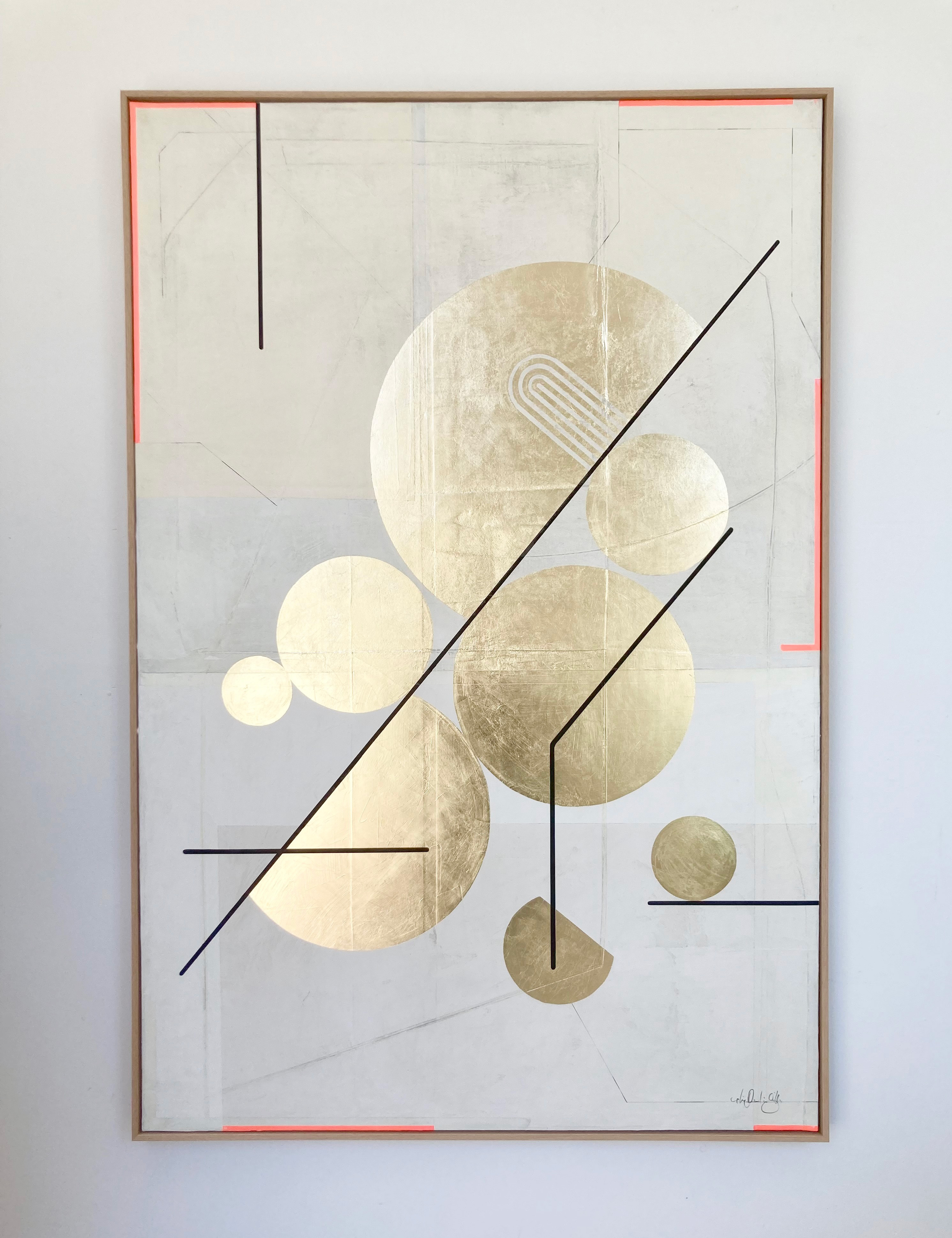 Huile, acrylique et or sur toile de lin, encadré